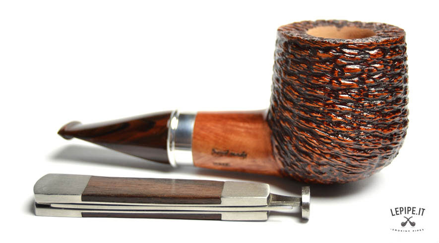 Pipa Santambrogio - Rusticata n. 183 Grande - Stand-Up Bocchino in metacrilato Senza filtro Rusticata Con altra elaborazione Diametro Interno: 22 mm. Diametro Esterno: 46 mm. Lunghezza: 121 mm. Altezza: 49 mm. Peso: 70 gr. Profondità: 40 mm.