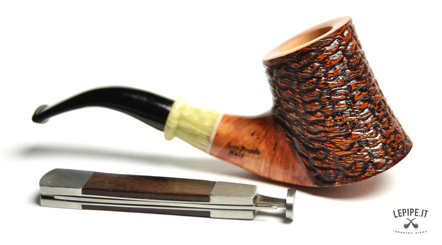 Pipa Santambrogio - Rusticata n. 201 Media - Stand-Up Bocchino in metacrilato Senza filtro Rusticata Con altra elaborazione Diametro Interno: 20 mm. Diametro Esterno: 39 mm. Lunghezza: 140 mm. Altezza: 51 mm. Peso: 58 gr. Profondità: 39 mm.