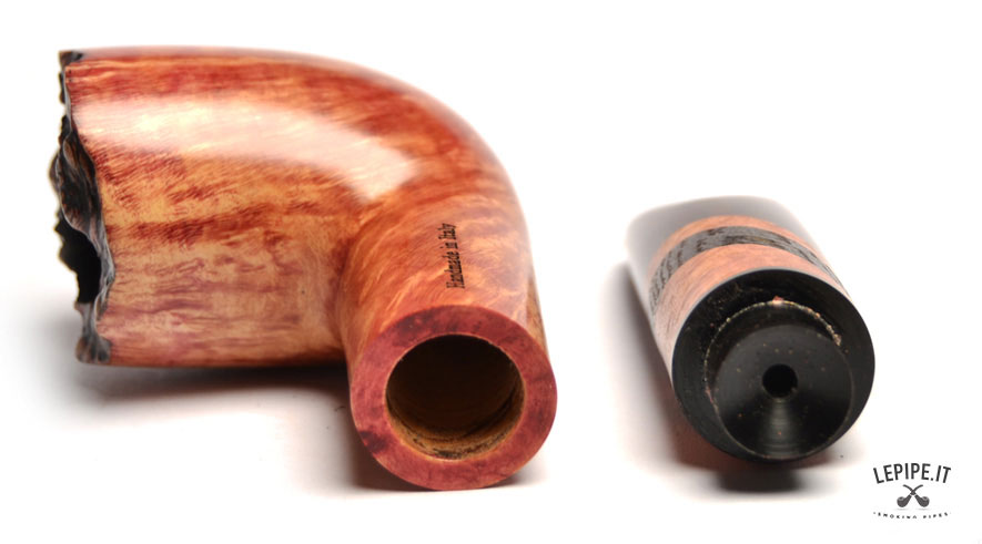 Pipa Paronelli - Reverse n. 11  Bocchino in metacrilato Calabash reverse system Liscia Con altra elaborazione Diametro Interno: 21 mm. Diametro Esterno: 37 mm. Lunghezza: 135 mm. Altezza: 52 mm. Peso: 56 gr. Profondità: 40 mm.