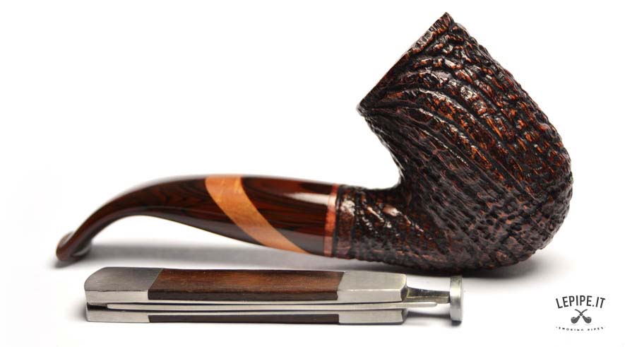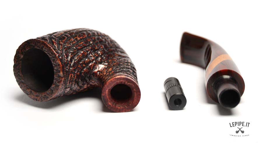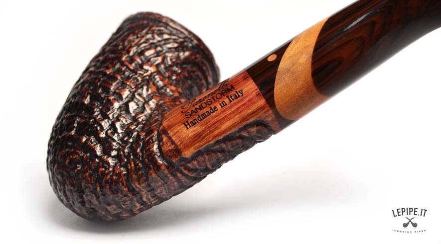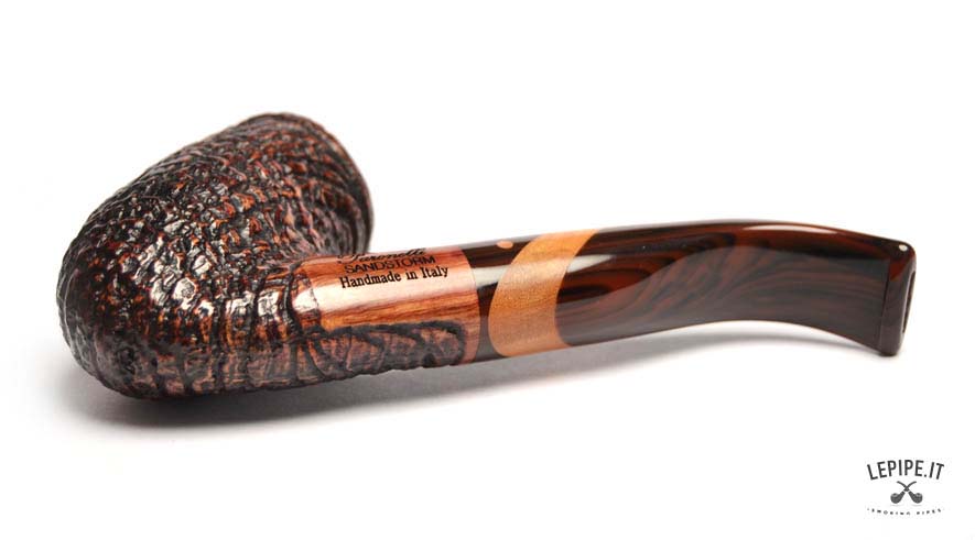 Pipa Paronelli - Sandstorm n. 13  Bocchino in metacrilato Con sede per filtro da 9 mm. Rusticata Senza elaborazione Diametro Interno: 21 mm. Diametro Esterno: 38 mm. Lunghezza: 130 mm. Altezza: 55 mm. Peso: 41 gr. Profondità: 39 mm.