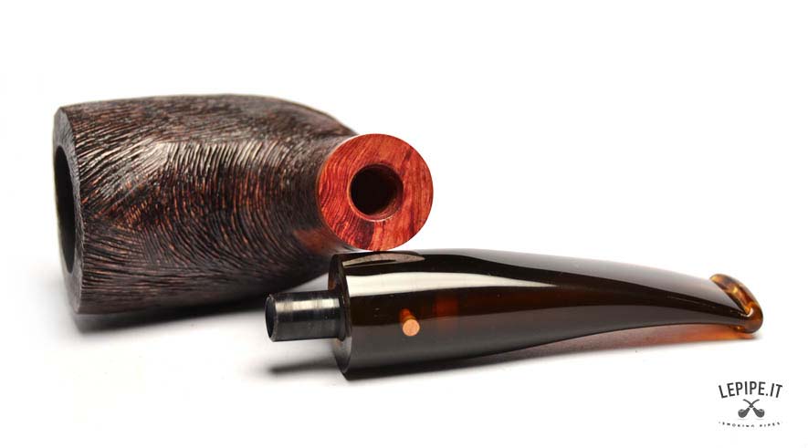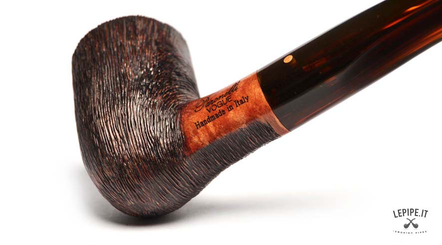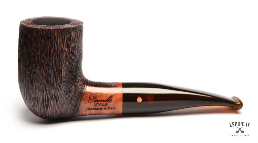 Pipa Paronelli - Vogue n. 18  Bocchino in metacrilato Senza filtro Rusticata Senza elaborazione Diametro Interno: 22 mm. Diametro Esterno: 37 mm. Lunghezza: 130 mm. Altezza: 57 mm. Peso: 60 gr. Profondità: 44 mm.