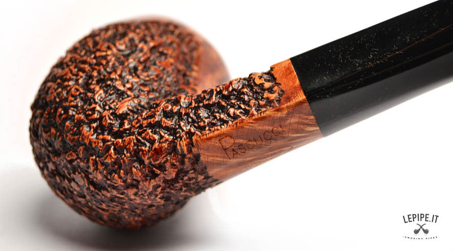 Pipa Pascucci - Rusticata n. 97  Bocchino in metacrilato Senza filtro Rusticata Senza elaborazione Diametro Interno: 20 mm. Diametro Esterno: 43 mm. Lunghezza: 139 mm. Altezza: 48 mm. Peso: 54 gr. Profondità: 35 mm.