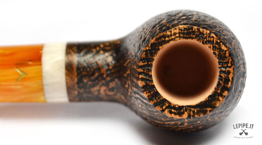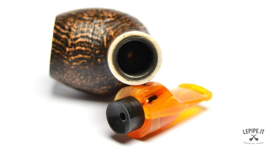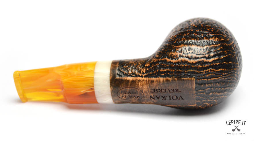 Pipa Volkan - n. 77 Calabash reverse system Bocchino in metacrilato Calabash reverse system Sabbiata Con altra elaborazione Diametro Interno: 20 mm. Diametro Esterno: 42 mm. Lunghezza: 114 mm. Altezza: 45 mm. Peso: 53 gr. Profondità: 38 mm.