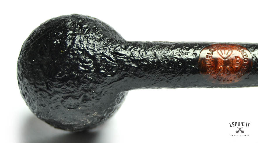 Pipa Penzo - n. 53  Bocchino in ebanite Senza filtro Sabbiata Senza elaborazione Diametro Interno: 19 mm. Diametro Esterno: 28 mm. Lunghezza: 135 mm. Altezza: 37 mm. Peso: 18 gr. Profondità: 32 mm.