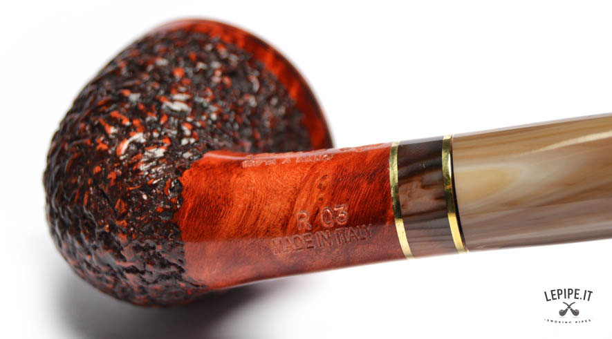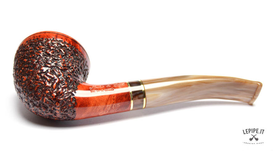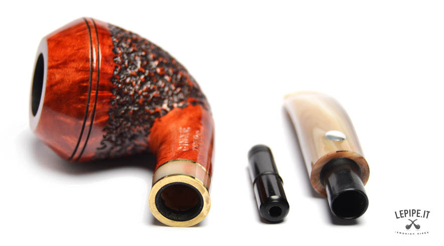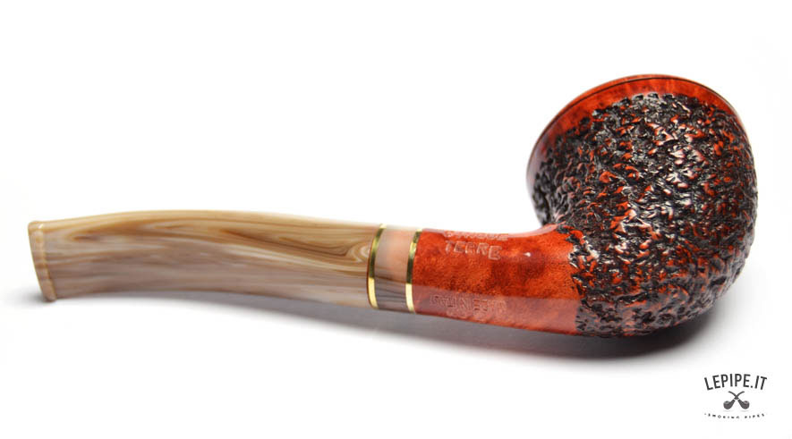 Pipa Mastro de Paja - Cinque Terre n. 9  Bocchino in metacrilato Con sede per filtro da 9 mm. Semi rusticata Con altra elaborazione Diametro Interno: 20 mm. Diametro Esterno: 45 mm. Lunghezza: 146 mm. Altezza: 54 mm. Peso: 55 gr. Profondità: 44 mm.