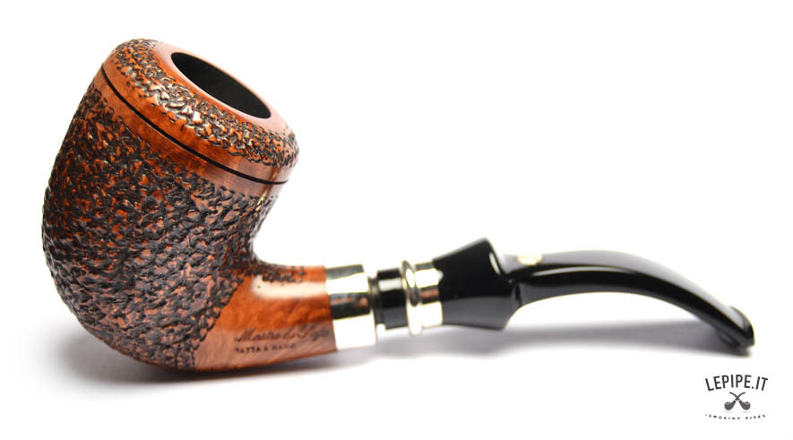 Pipa Mastro de Paja - Il Boia n. 3  Bocchino in metacrilato Con sede per filtro da 9 mm. Rusticata Con elaborazione in argento Diametro Interno: 21 mm. Diametro Esterno: 40 mm. Lunghezza: 147 mm. Altezza: 57 mm. Peso: 76 gr. Profondità: 44 mm.