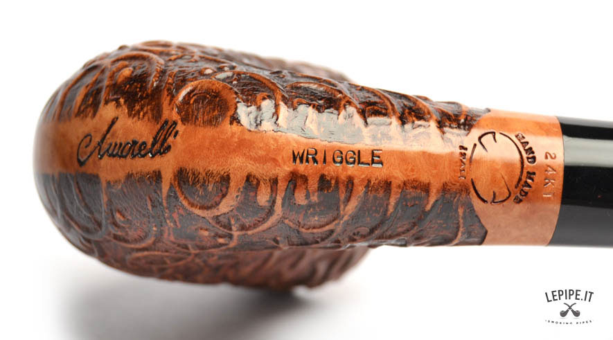 Pipa Amorelli - Wriggle n. 24  Bocchino in metacrilato Senza filtro Rusticata Senza elaborazione Diametro Interno: 19 mm. Diametro Esterno: 30 mm. Lunghezza: 132 mm. Altezza: 45 mm. Peso: 32 gr. Profondità: 36 mm.
