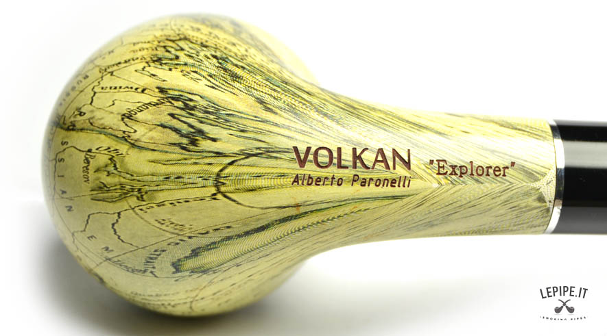 Pipa Volkan - n. 100  Bocchino in metacrilato Senza filtro Liscia Con altra elaborazione Diametro Interno: 21 mm. Diametro Esterno: 44 mm. Lunghezza: 147 mm. Altezza: 39 mm. Peso: 55 gr. Profondità: 32 mm.