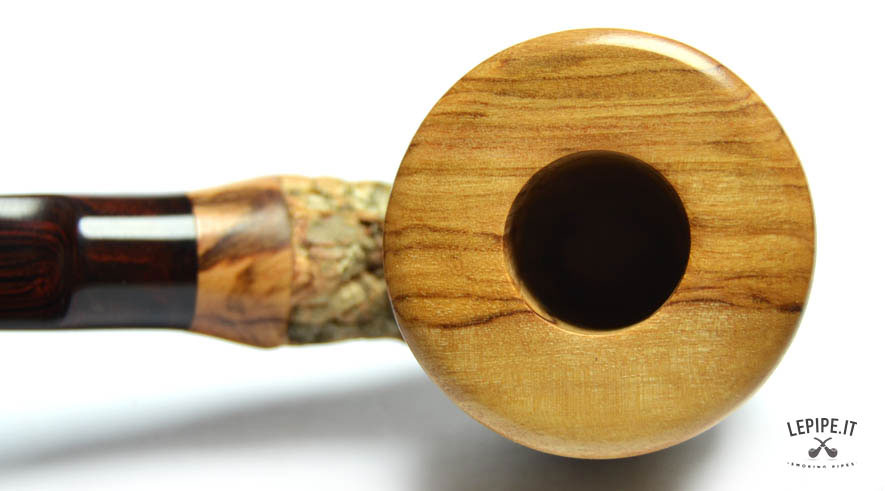 Pipa Spanu - Ricoperta in sughero n. 42 In legno di ulivo Bocchino in metacrilato Senza filtro Ricoperta in sughero Con altra elaborazione Diametro Interno: 19 mm. Diametro Esterno: 45 mm. Lunghezza: 142 mm. Altezza: 56 mm. Peso: 76 gr. Profondità: 40 mm.