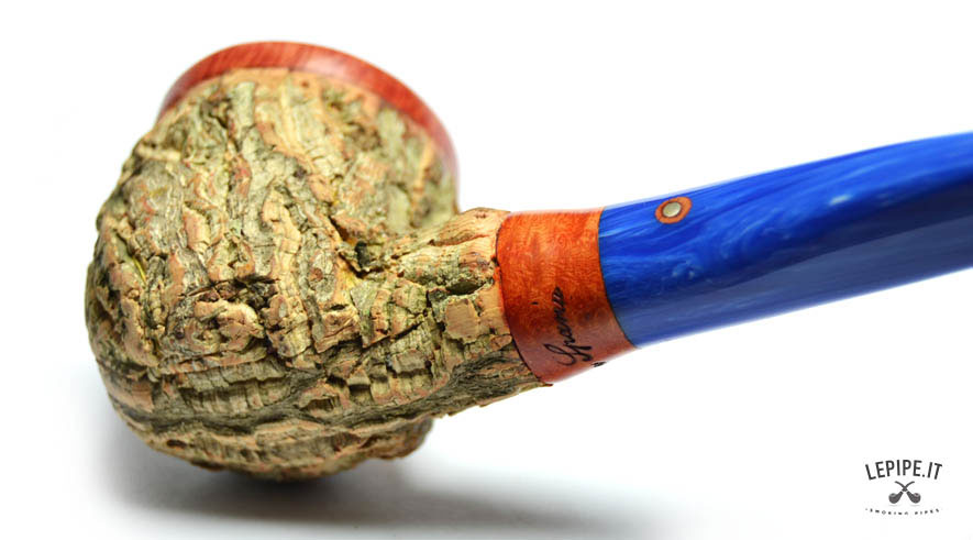 Pipa Spanu - Ricoperta in sughero n. 46 Stand-Up Bocchino in metacrilato Senza filtro Ricoperta in sughero Con altra elaborazione Diametro Interno: 19 mm. Diametro Esterno: 44 mm. Lunghezza: 152 mm. Altezza: 54 mm. Peso: 62 gr. Profondità: 40 mm.