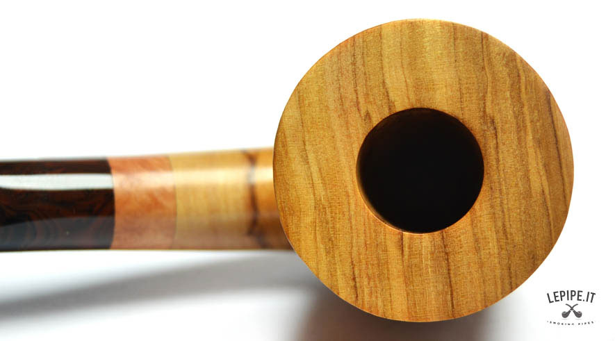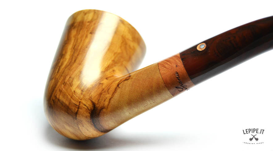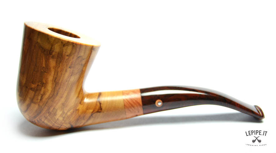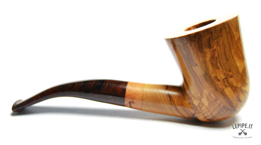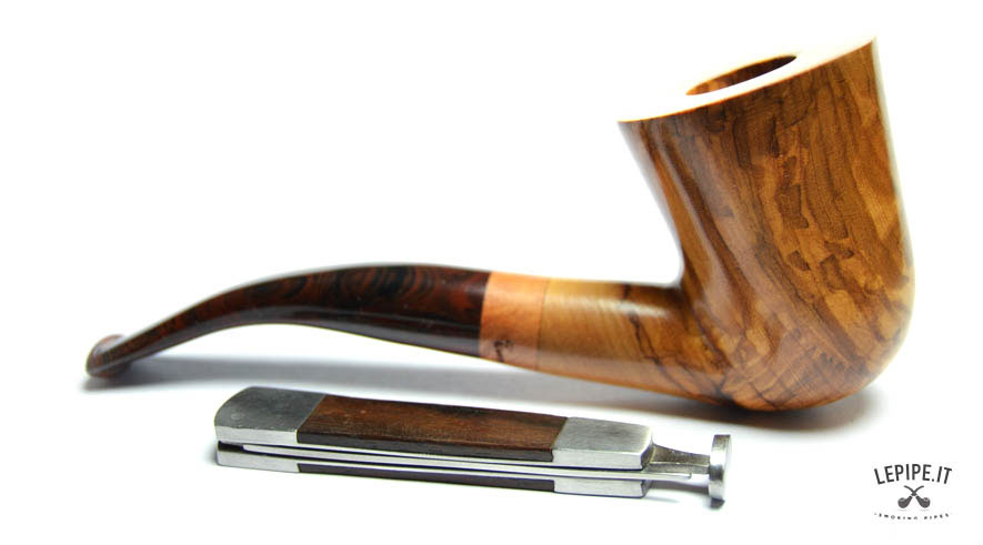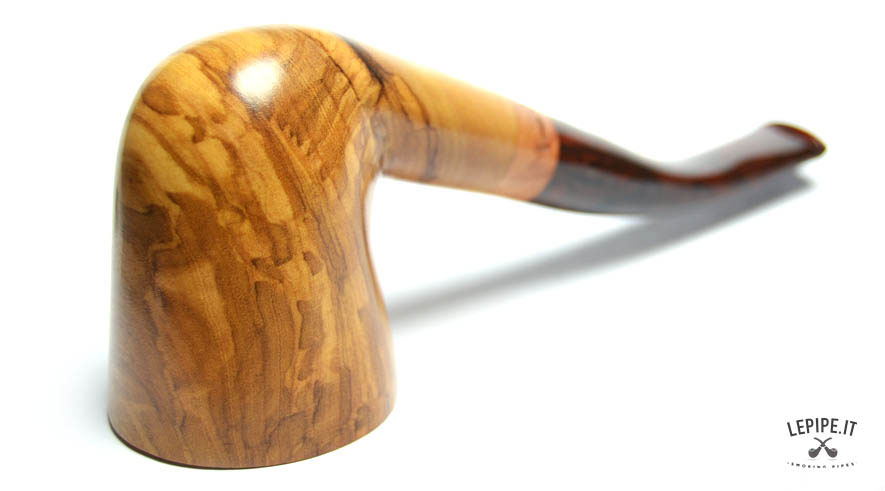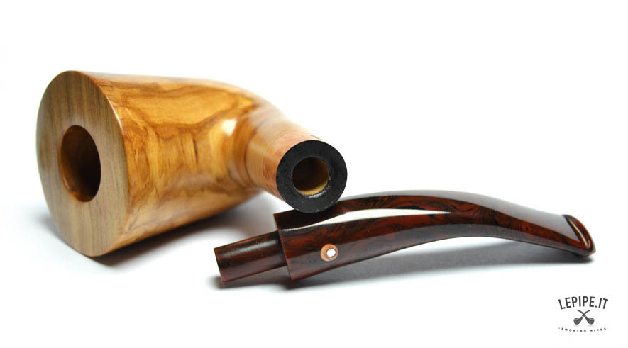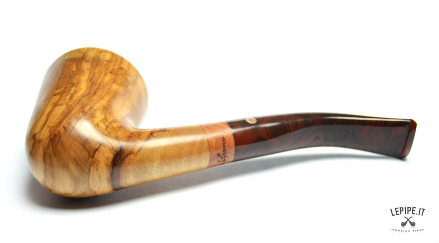 Pipa Spanu - Ulivo n. 49  Bocchino in metacrilato Senza filtro In legno di ulivo Con altra elaborazione Diametro Interno: 19 mm. Diametro Esterno: 46 mm. Lunghezza: 153 mm. Altezza: 61 mm. Peso: 80 gr. Profondità: 46 mm.