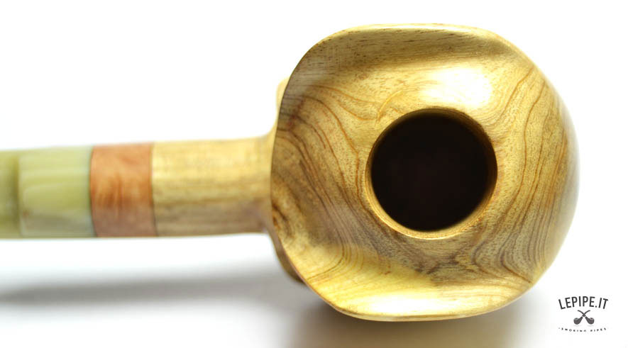 Pipa Spanu - Limone n. 46 Stand-Up Bocchino in metacrilato Senza filtro In legno di limone Con altra elaborazione Diametro Interno: 20 mm. Diametro Esterno: 48 mm. Lunghezza: 153 mm. Altezza: 55 mm. Peso: 82 gr. Profondità: 44 mm.
