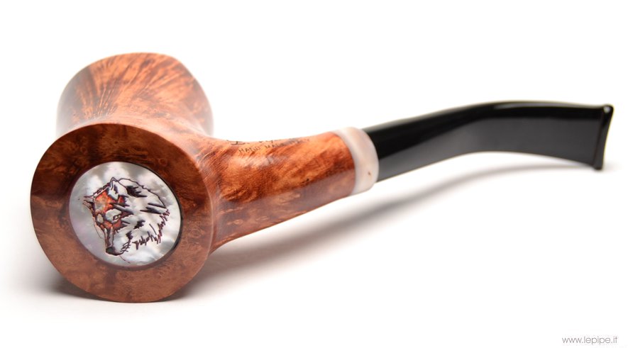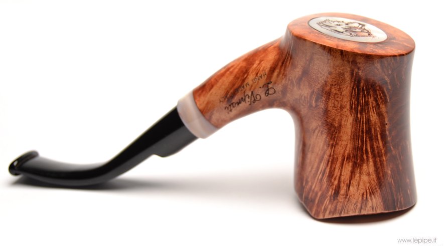 Pipa Viprati - Madreperla n. 02  Bocchino in metacrilato Senza filtro Liscia Con altra elaborazione Diametro Interno: 23 mm. Diametro Esterno: 39 mm. Lunghezza: 146 mm. Altezza: 58 mm. Peso: 65 gr. Profondità: 48 mm.