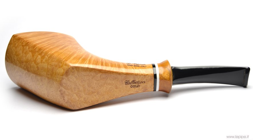 Pipa Viprati - Collection n. 07 Gold Bocchino in metacrilato Senza filtro Liscia Con altra elaborazione Diametro Interno: 24 mm. Diametro Esterno: 45 mm. Lunghezza: 180 mm. Altezza: 65 mm. Peso: 95 gr. Profondità: 54 mm.