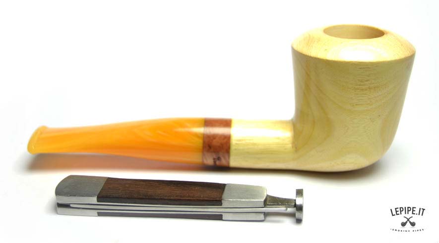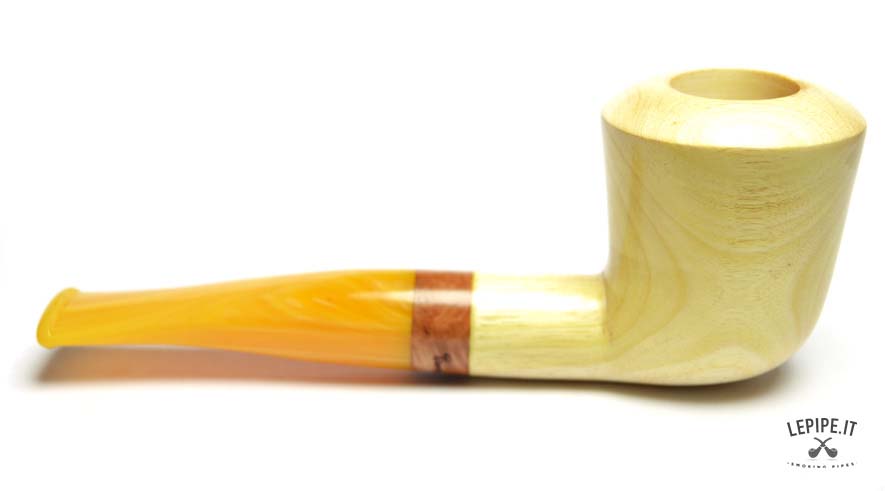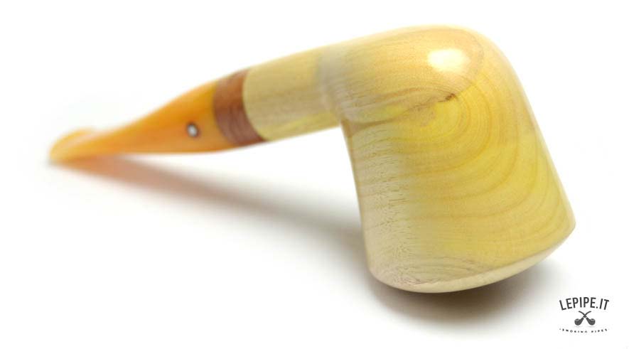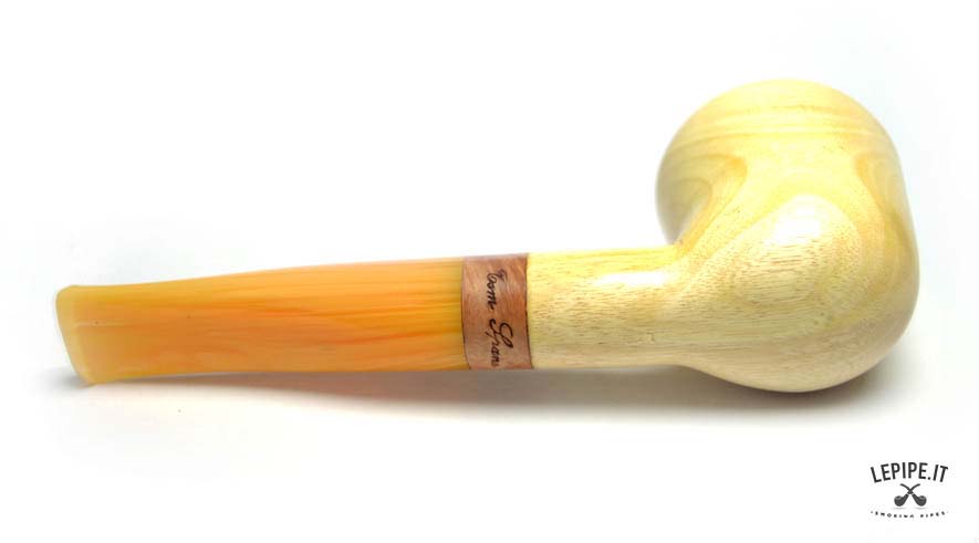 Pipa Spanu - Limone n. 48  Bocchino in metacrilato Senza filtro In legno di limone Con altra elaborazione Diametro Interno: 22 mm. Diametro Esterno: 44 mm. Lunghezza: 151 mm. Altezza: 55 mm. Peso: 65 gr. Profondità: 42 mm.