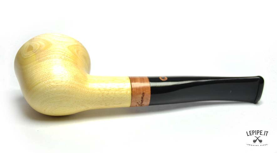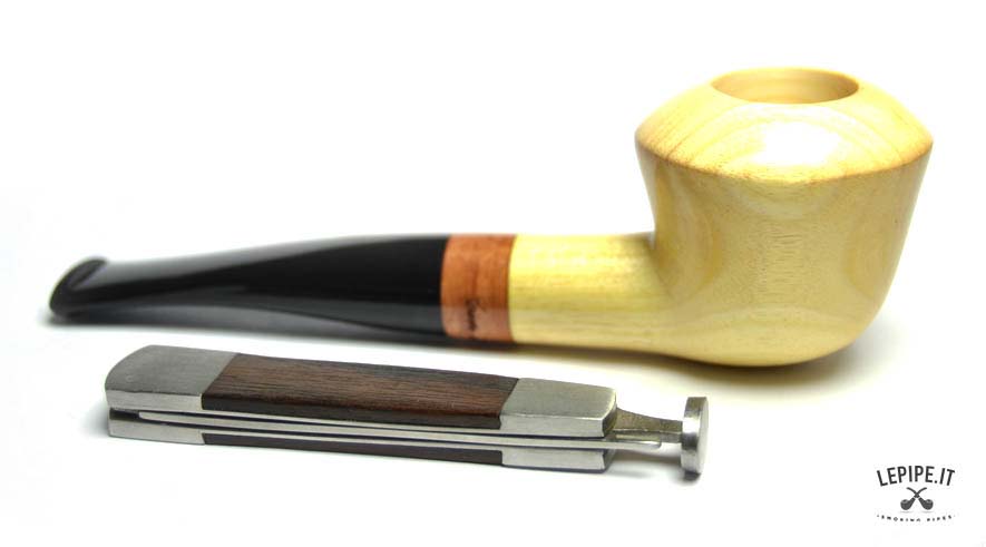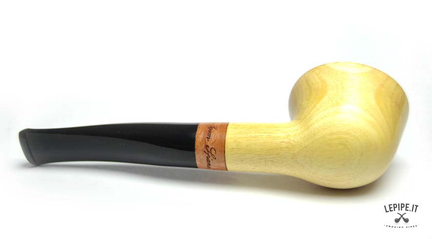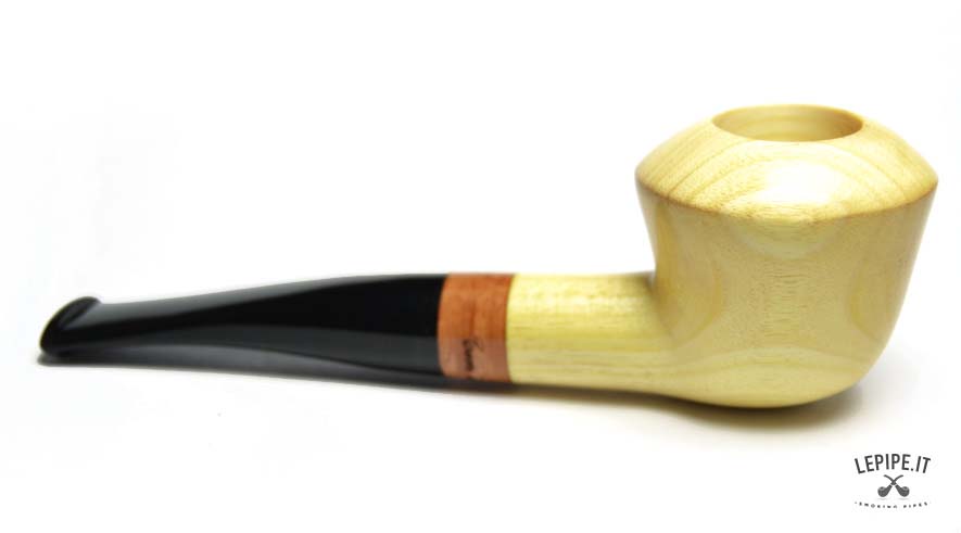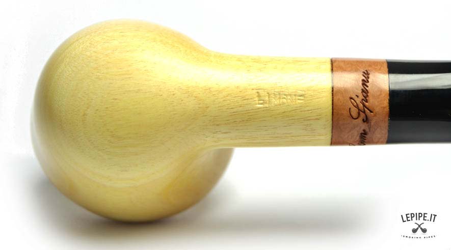 Pipa Spanu - Limone n. 50  Bocchino in metacrilato Senza filtro In legno di limone Con altra elaborazione Diametro Interno: 21 mm. Diametro Esterno: 43 mm. Lunghezza: 144 mm. Altezza: 43 mm. Peso: 46 gr. Profondità: 31 mm.
