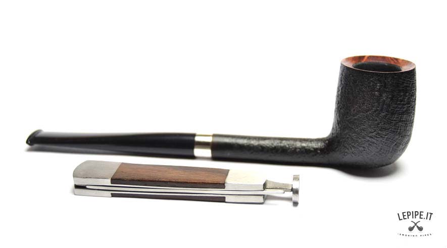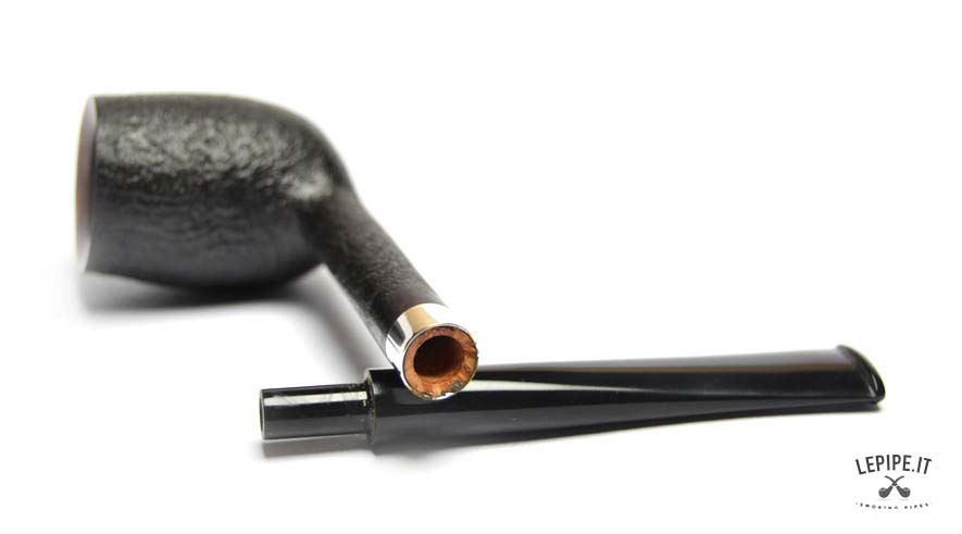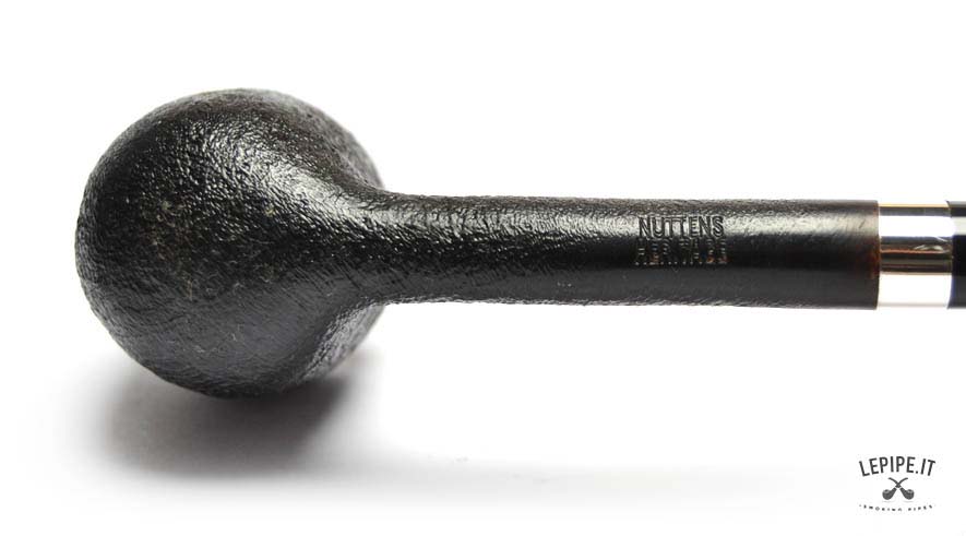 Pipa Nuttens - n. 56  Bocchino in metacrilato Senza filtro Sabbiata Con elaborazione in argento Diametro Interno: 19 mm. Diametro Esterno: 33 mm. Lunghezza: 163 mm. Altezza: 43 mm. Peso: 29 gr. Profondità: 37 mm.