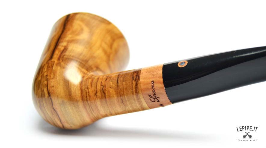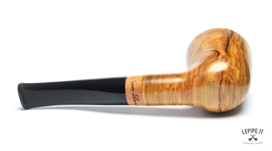 Pipa Spanu - Ulivo n. 55  Bocchino in metacrilato Senza filtro In legno di ulivo Con altra elaborazione Diametro Interno: 19 mm. Diametro Esterno: 48 mm. Lunghezza: 157 mm. Altezza: 55 mm. Peso: 83 gr. Profondità: 45 mm.