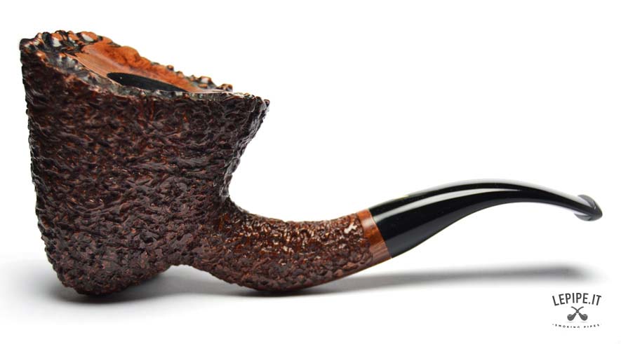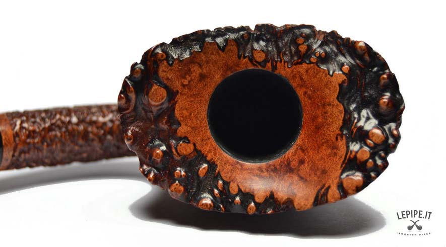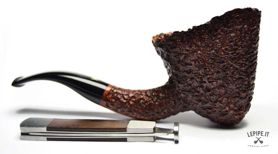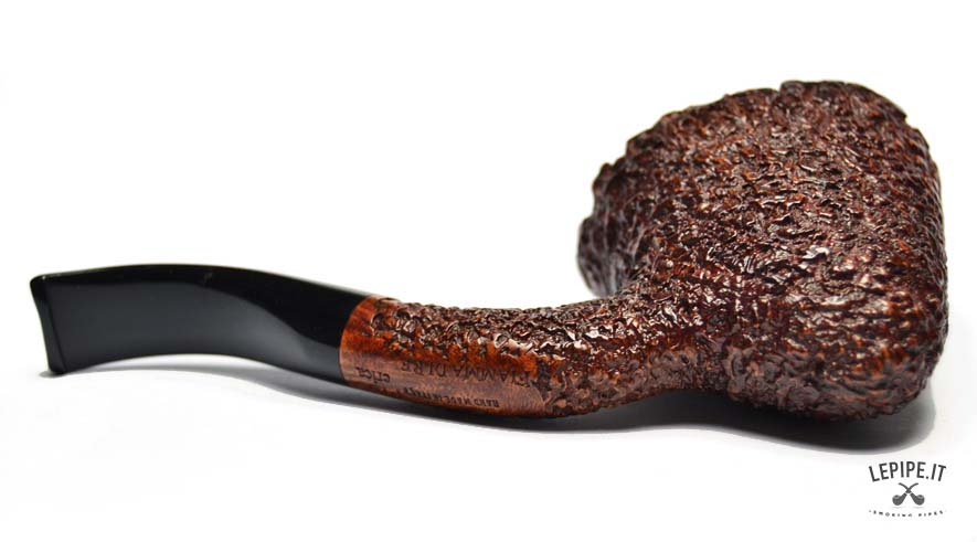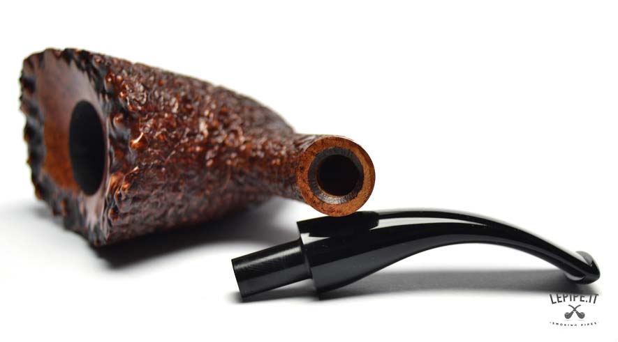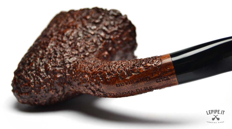 Pipa Fiamma di Re - Erica n. 26  Bocchino in metacrilato Senza filtro Rusticata Senza elaborazione Diametro Interno: 20 mm. Diametro Esterno: 43 mm. Lunghezza: 153 mm. Altezza: 60 mm. Peso: 63 gr. Profondità: 45 mm.