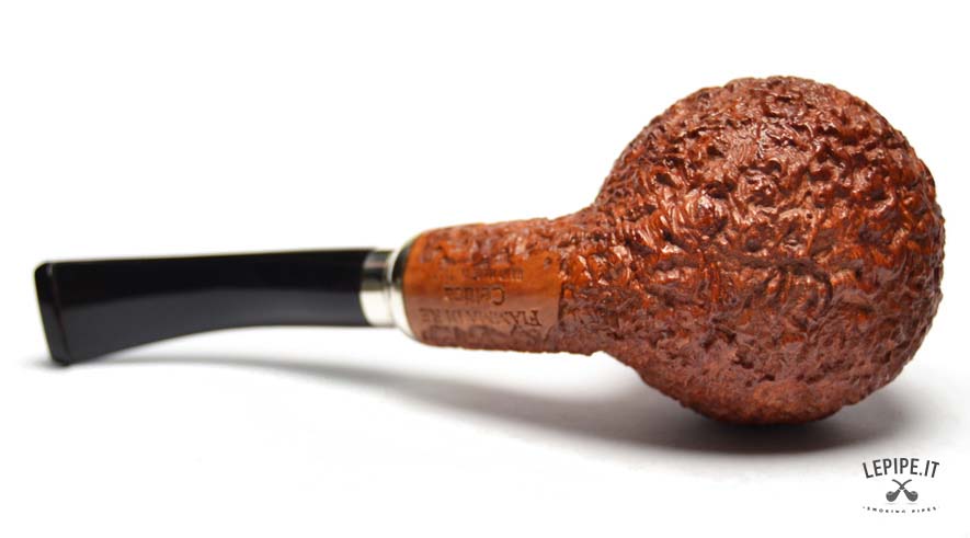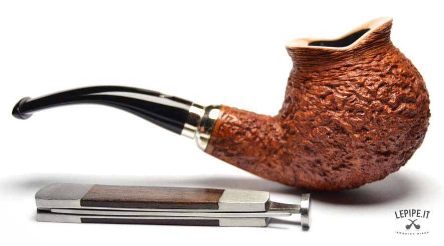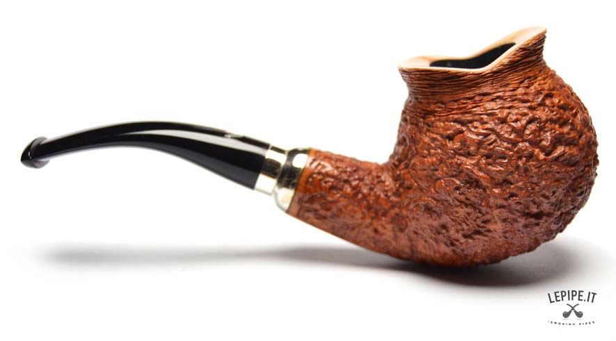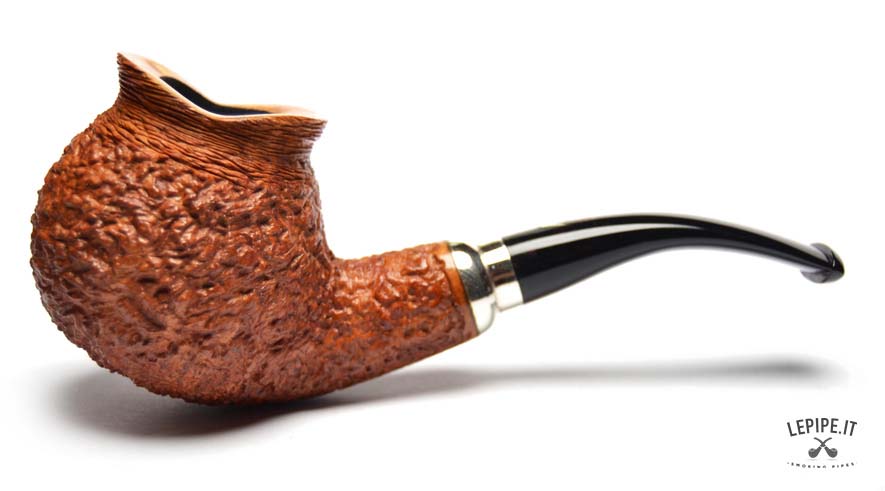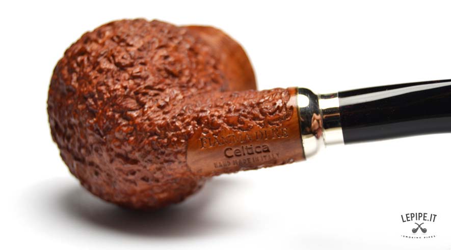 Pipa Fiamma di Re - Celtica n. 3  Bocchino in metacrilato Senza filtro Rusticata Con elaborazione in argento Diametro Interno: 20 mm. Diametro Esterno: 49 mm. Lunghezza: 140 mm. Altezza: 51 mm. Peso: 67 gr. Profondità: 39 mm.