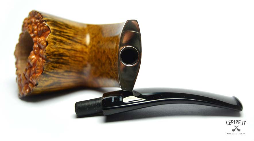 Pipa Di Gangi - n. 52 Stand-Up Bocchino in metacrilato Senza filtro Liscia Con elaborazione in argento Diametro Interno: 22 mm. Diametro Esterno: 45 mm. Lunghezza: 140 mm. Altezza: 44 mm. Peso: 50 gr. Profondità: 36 mm.