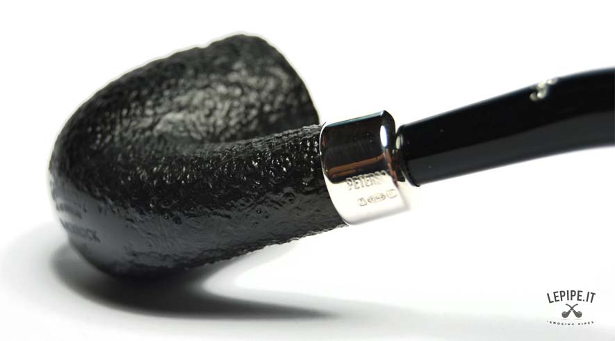 Pipa Peterson - Blackrock Army n. 25  Bocchino in metacrilato Senza filtro Sabbiata Con elaborazione in argento Diametro Interno: 19 mm. Diametro Esterno: 32 mm. Lunghezza: 136 mm. Altezza: 39 mm. Peso: 30 gr. Profondità: 36 mm.