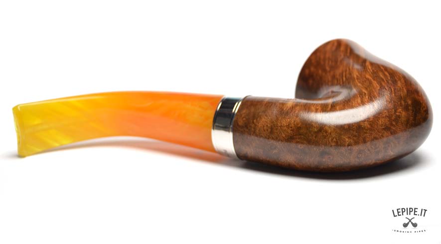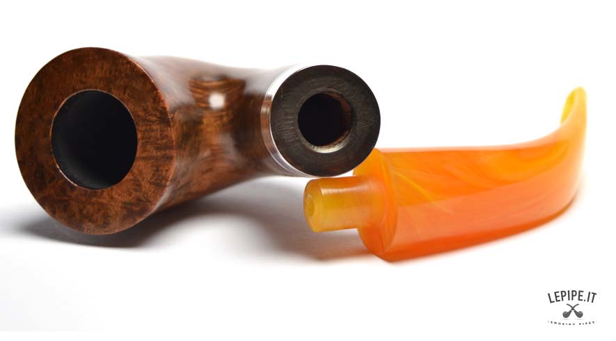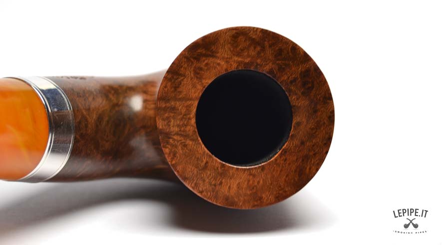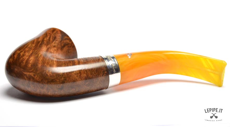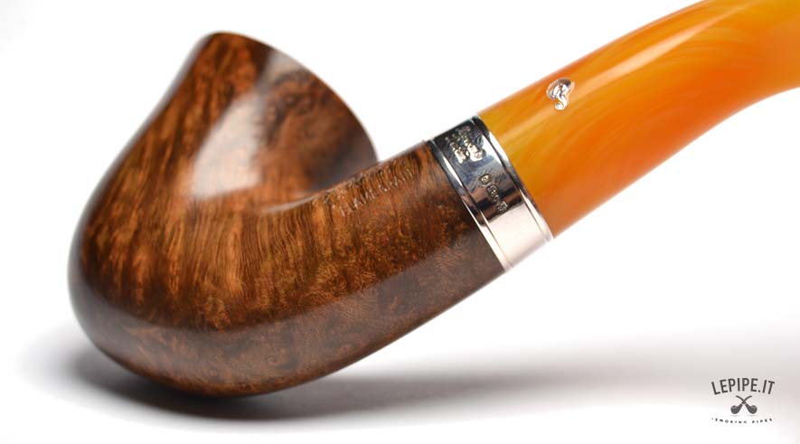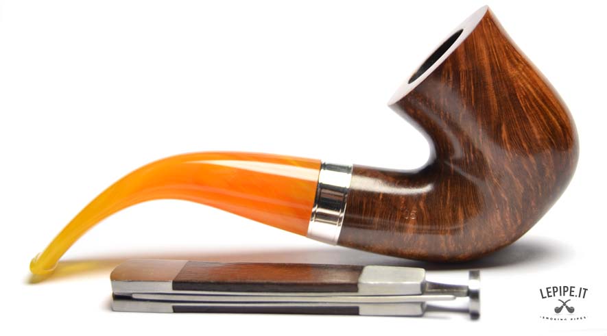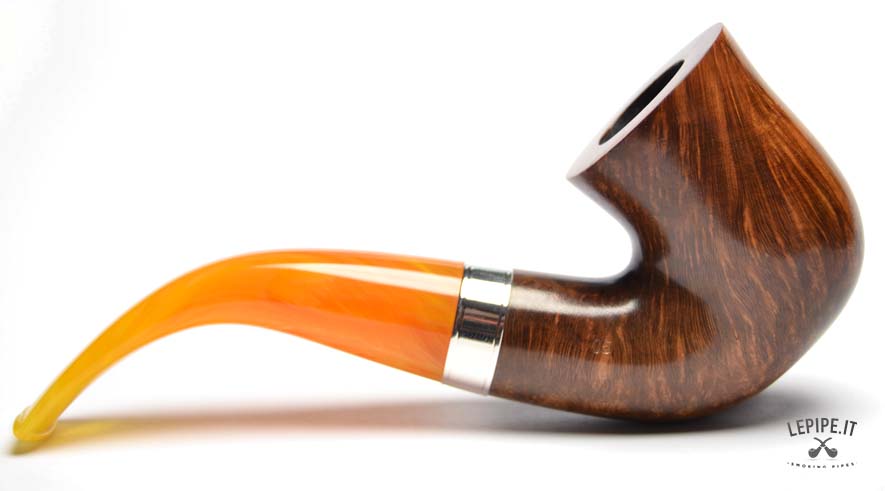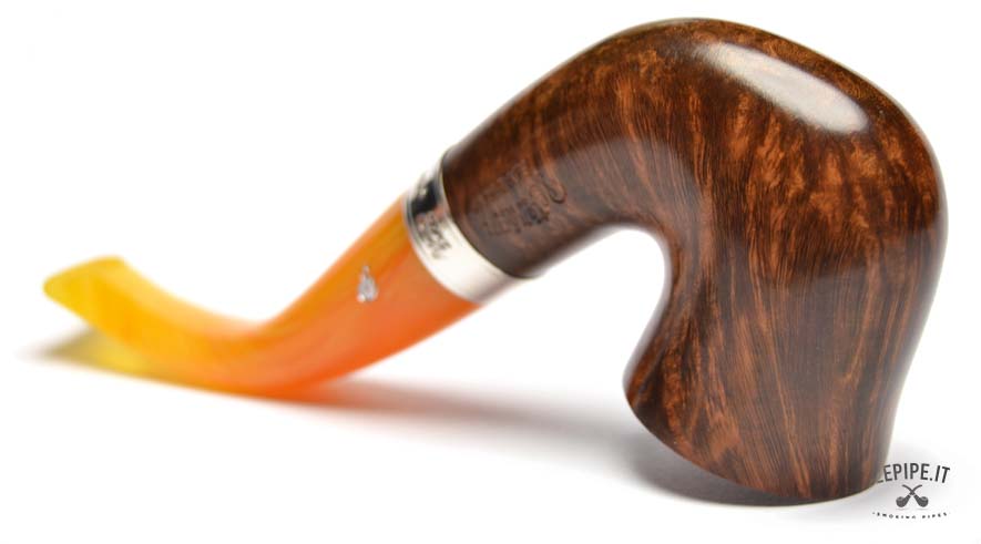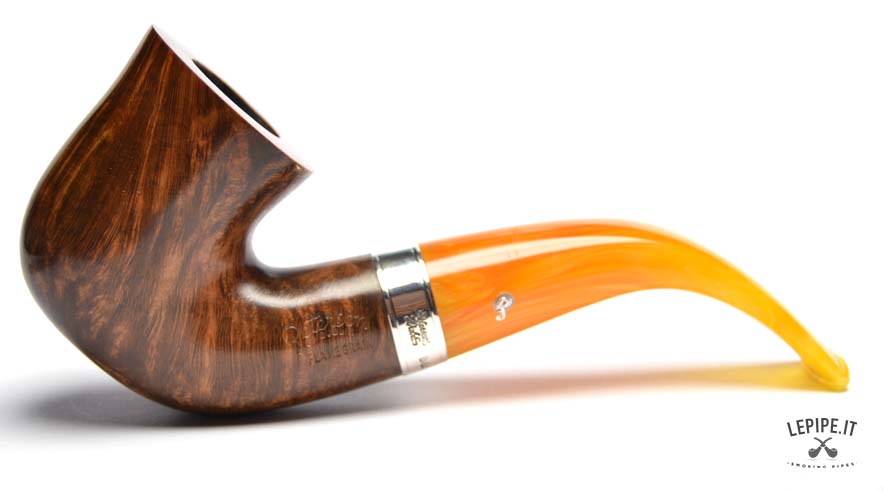 Pipa Peterson - Flame Grain n. 12  Bocchino in metacrilato Senza filtro Liscia Con elaborazione in argento Diametro Interno: 19 mm. Diametro Esterno: 36 mm. Lunghezza: 142 mm. Altezza: 48 mm. Peso: 55 gr. Profondità: 39 mm.