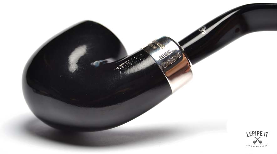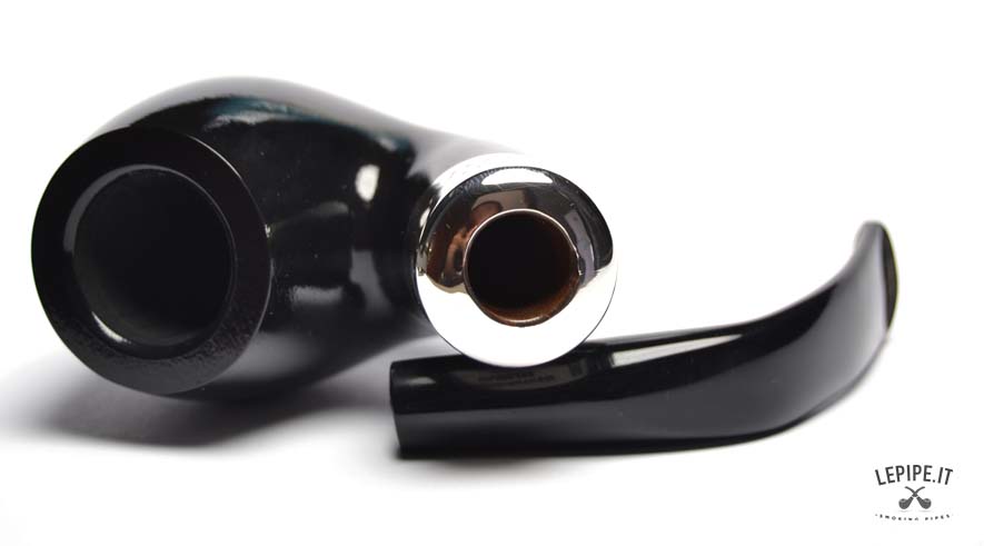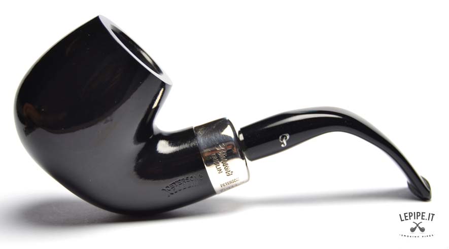 Pipa Peterson - Gaelach Dubh n. 8  Bocchino in metacrilato Senza filtro Liscia Con elaborazione in argento Diametro Interno: 20 mm. Diametro Esterno: 42 mm. Lunghezza: 142 mm. Altezza: 48 mm. Peso: 64 gr. Profondità: 35 mm.