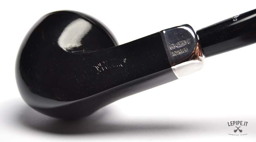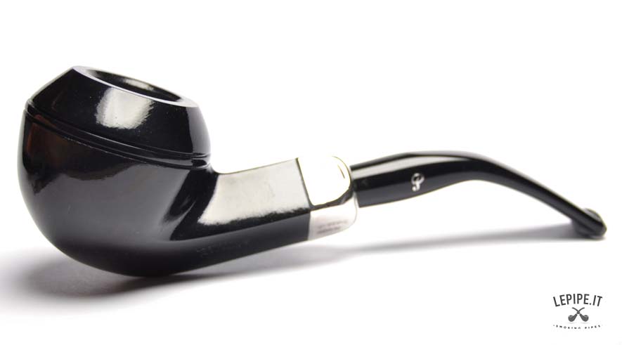 Pipa Peterson - Gaelach Dubh n. 9  Bocchino in metacrilato Senza filtro Liscia Con elaborazione in argento Diametro Interno: 21 mm. Diametro Esterno: 48 mm. Lunghezza: 156 mm. Altezza: 48 mm. Peso: 60 gr. Profondità: 36 mm.
