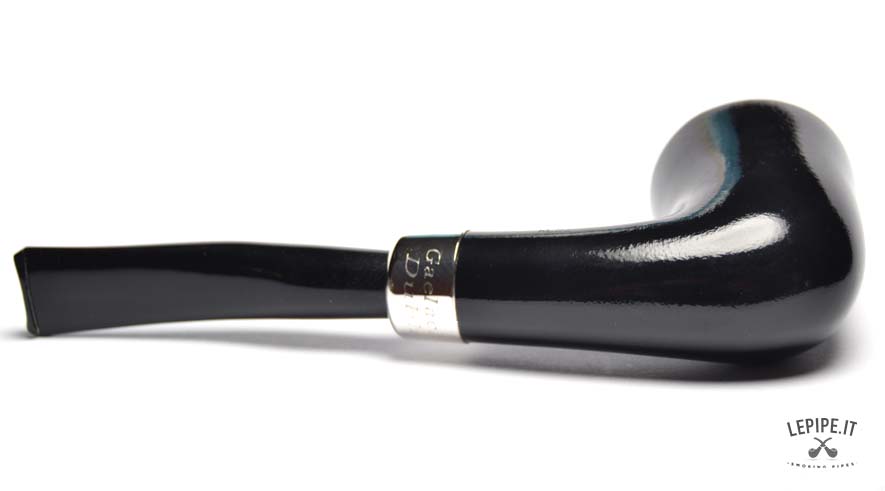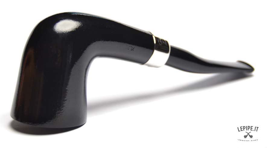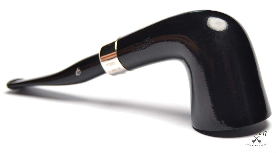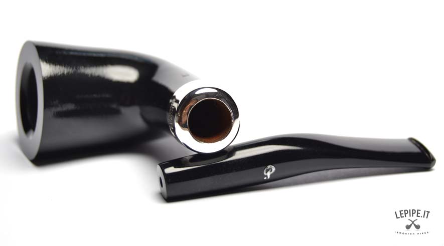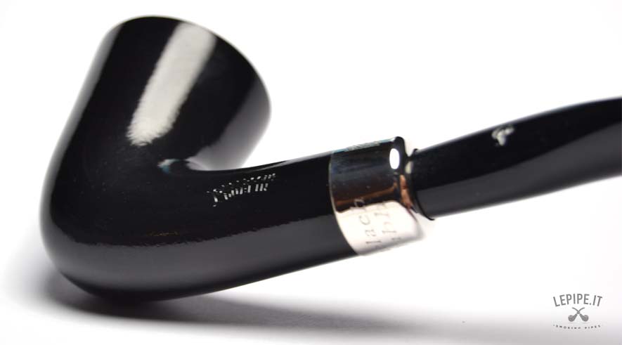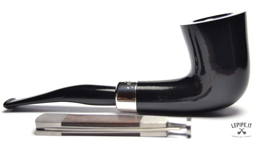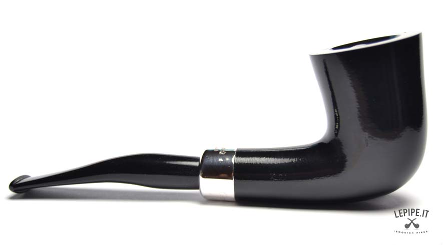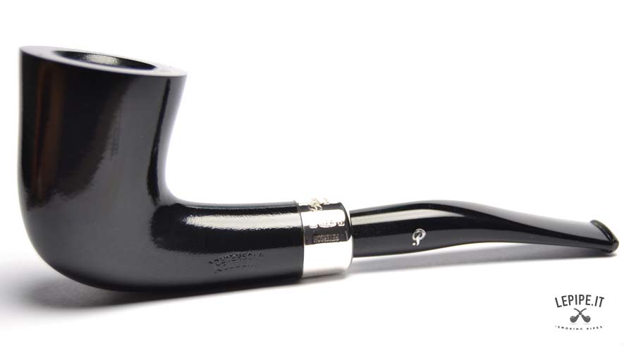 Pipa Peterson - Gaelach Dubh n. 13  Bocchino in metacrilato Senza filtro Liscia Con elaborazione in argento Diametro Interno: 21 mm. Diametro Esterno: 38 mm. Lunghezza: 156 mm. Altezza: 56 mm. Peso: 52 gr. Profondità: 42 mm.