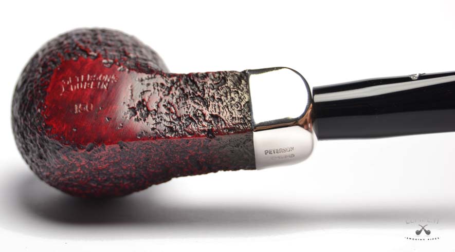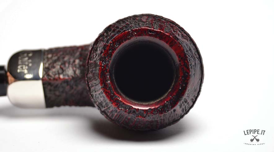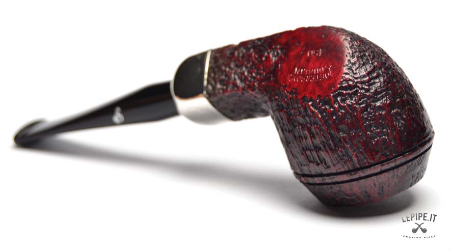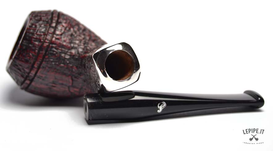 Pipa Peterson - Golfer n. 22  Bocchino in metacrilato Senza filtro Sabbiata Con elaborazione in argento Diametro Interno: 20 mm. Diametro Esterno: 40 mm. Lunghezza: 141 mm. Altezza: 46 mm. Peso: 40 gr. Profondità: 36 mm.