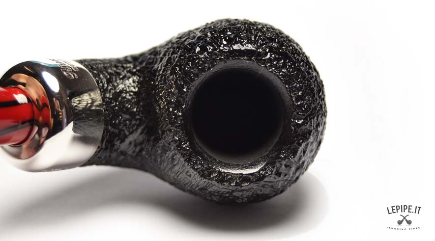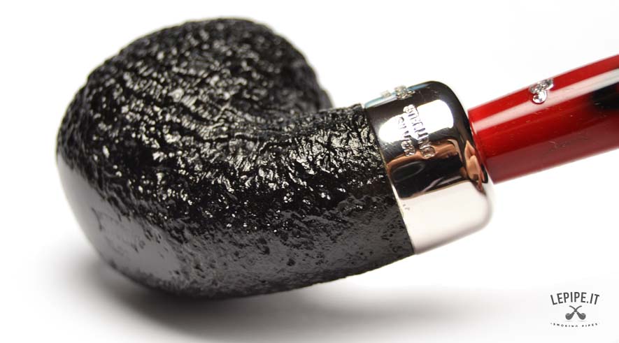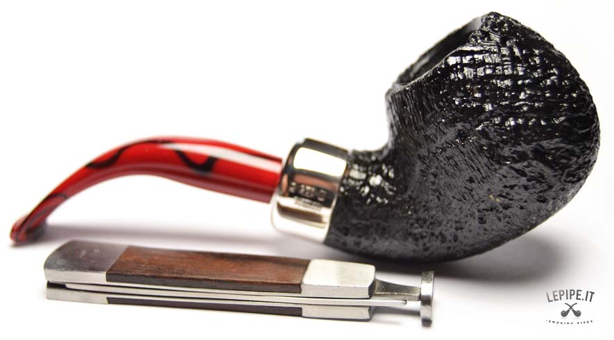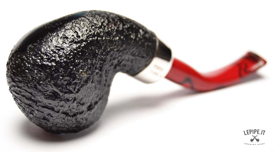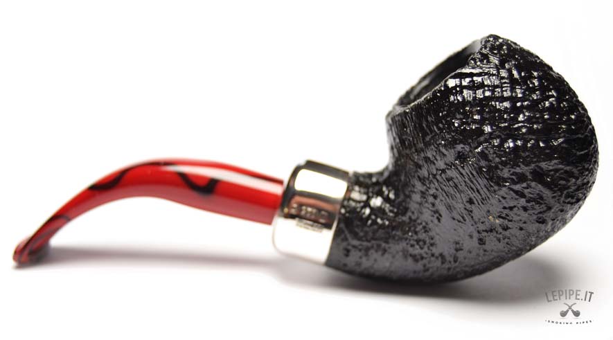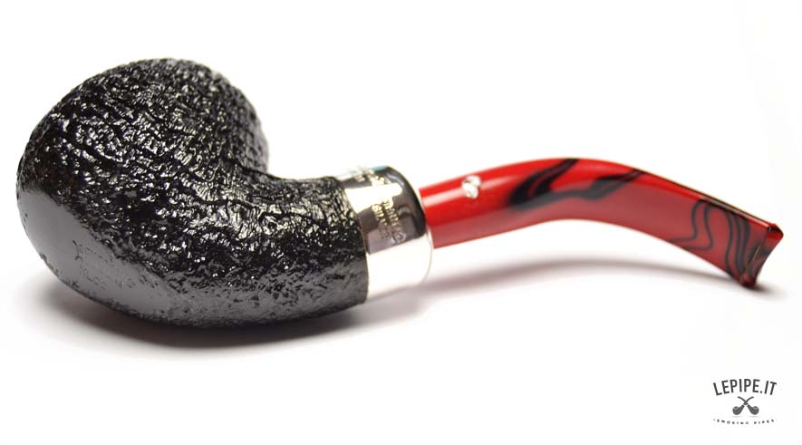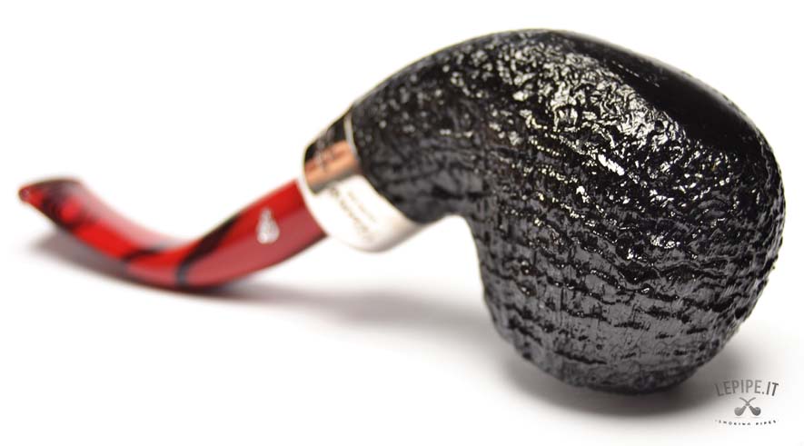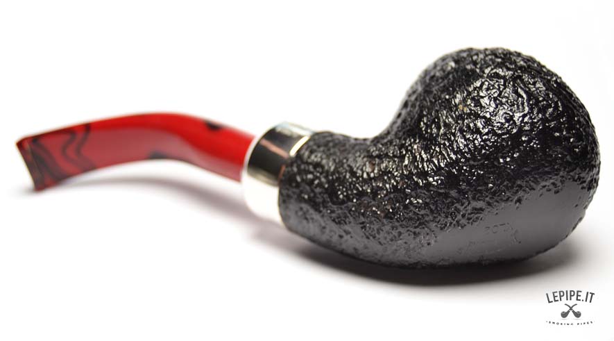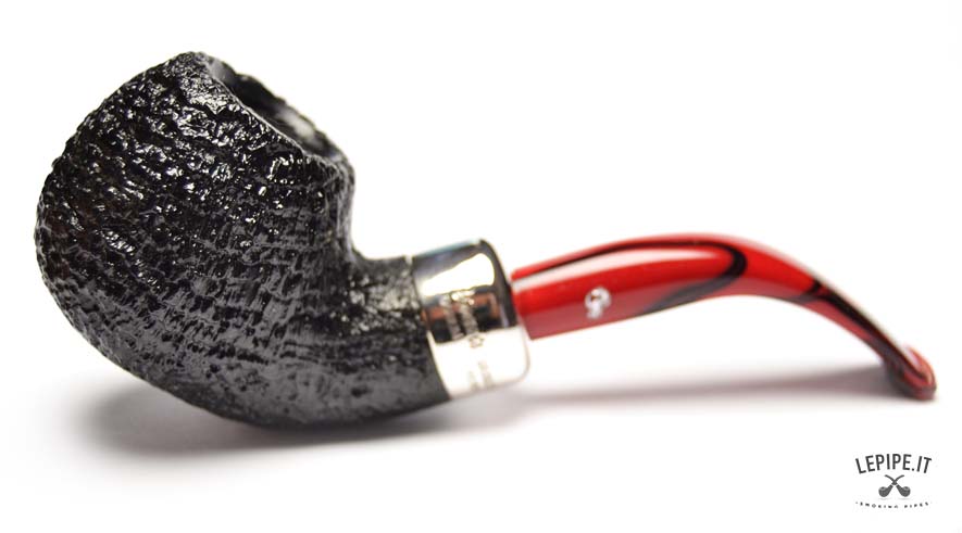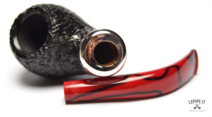 Pipa Peterson - Magma n. 10  Bocchino in metacrilato Senza filtro Sabbiata Con elaborazione in argento Diametro Interno: 20 mm. Diametro Esterno: 43 mm. Lunghezza: 144 mm. Altezza: 41 mm. Peso: 62 gr. Profondità: 35 mm.