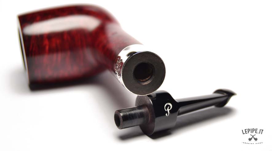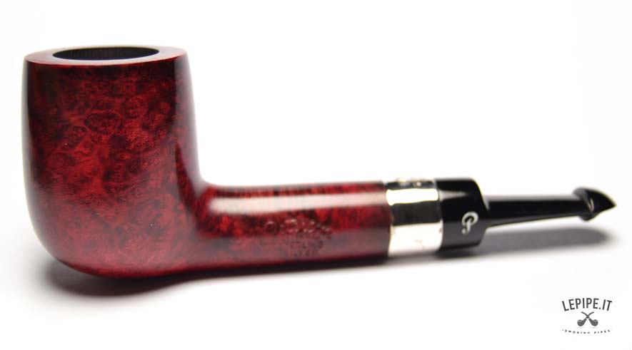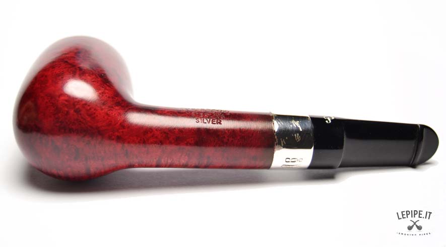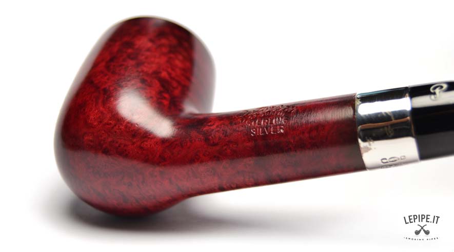 Pipa Peterson - Sterling Silver n. 12  Bocchino in ebanite Senza filtro Liscia Con elaborazione in argento Diametro Interno: 20 mm. Diametro Esterno: 35 mm. Lunghezza: 126 mm. Altezza: 45 mm. Peso: 37 gr. Profondità: 36 mm.