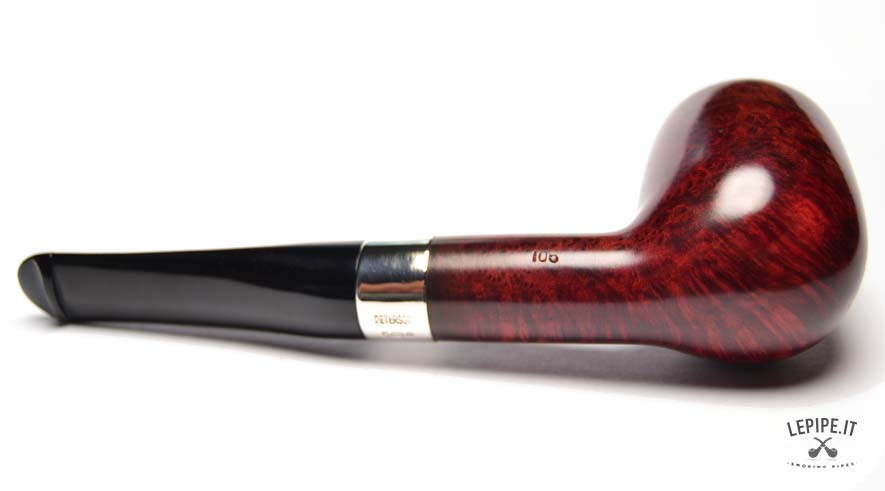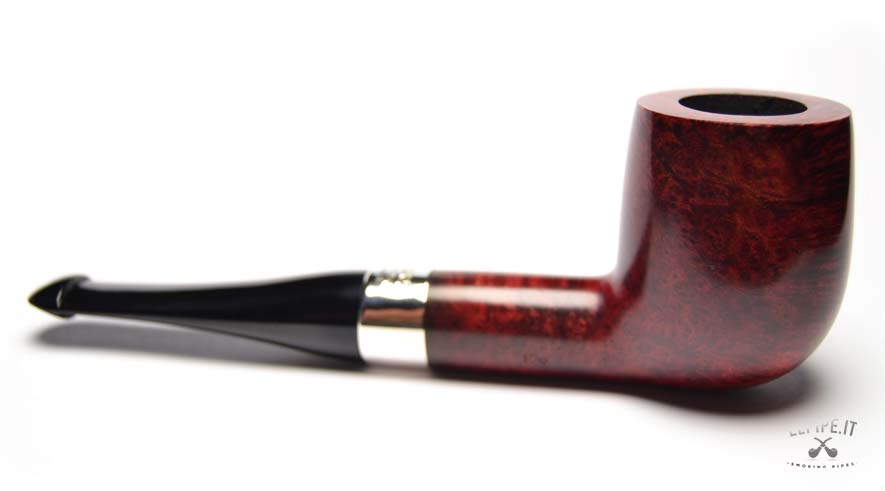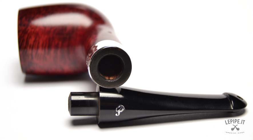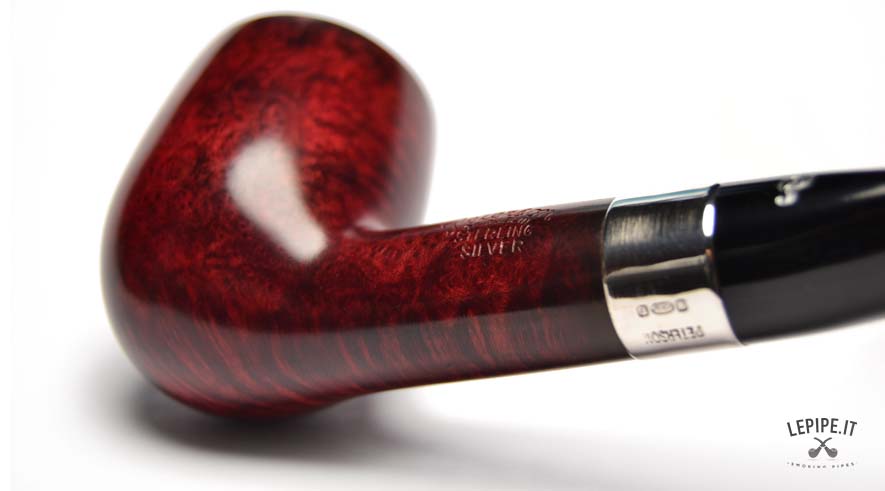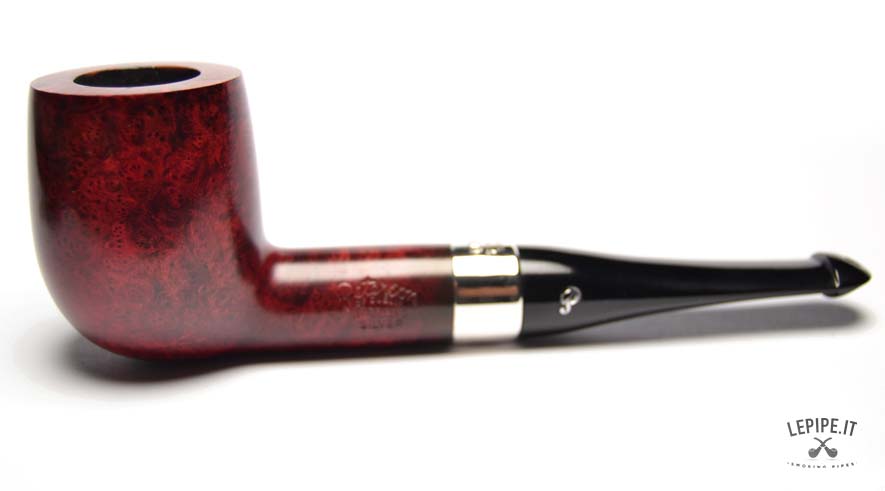 Pipa Peterson - Sterling Silver n. 14  Bocchino in ebanite Senza filtro Liscia Con elaborazione in argento Diametro Interno: 20 mm. Diametro Esterno: 38 mm. Lunghezza: 148 mm. Altezza: 48 mm. Peso: 50 gr. Profondità: 39 mm.
