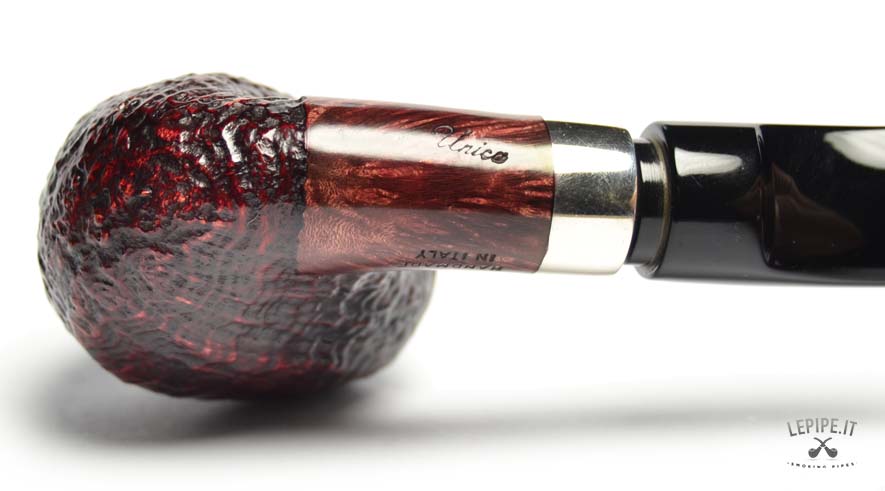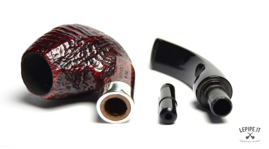 Pipa Mastro de Paja - Sabbiata n. 62  Bocchino in metacrilato Con sede per filtro da 9 mm. Sabbiata Con altra elaborazione Diametro Interno: 21 mm. Diametro Esterno: 37 mm. Lunghezza: 137 mm. Altezza: 50 mm. Peso: 53 gr. Profondità: 42 mm.