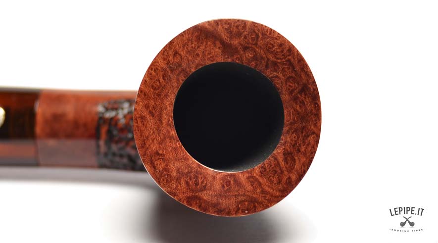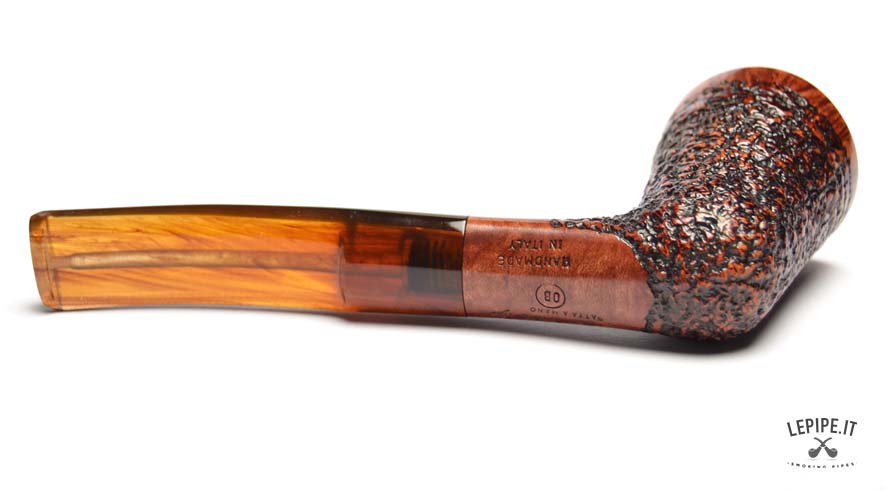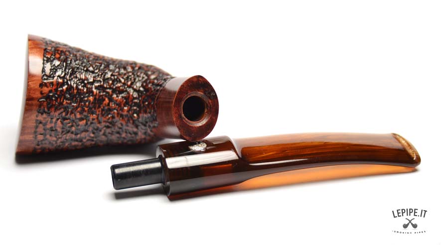 Pipa Mastro de Paja - Rusticata n. 42  Bocchino in metacrilato Senza filtro Rusticata Senza elaborazione Diametro Interno: 20 mm. Diametro Esterno: 37 mm. Lunghezza: 142 mm. Altezza: 49 mm. Peso: 36 gr. Profondità: 36 mm.