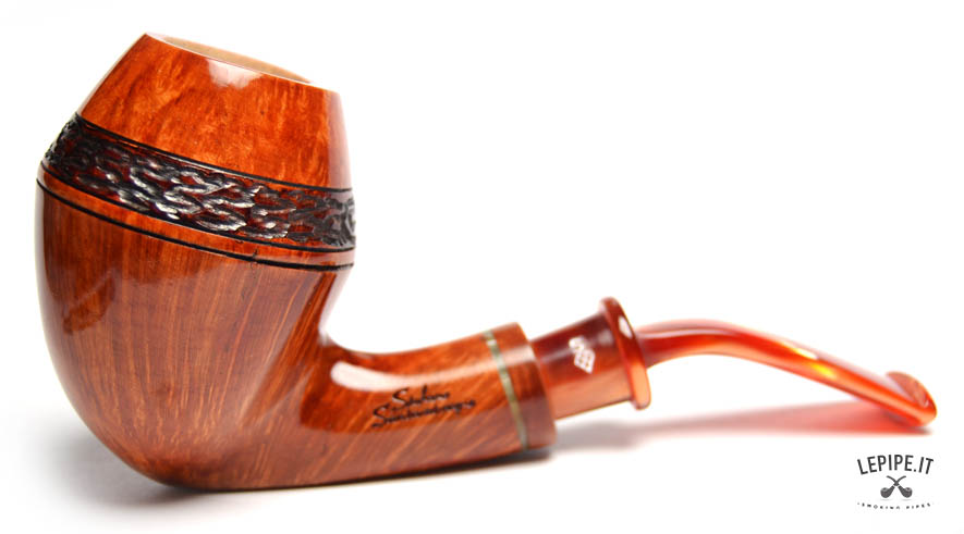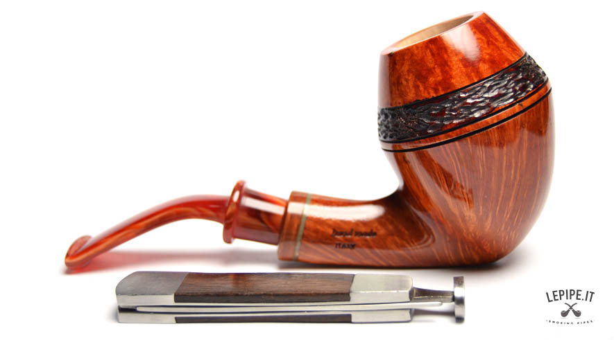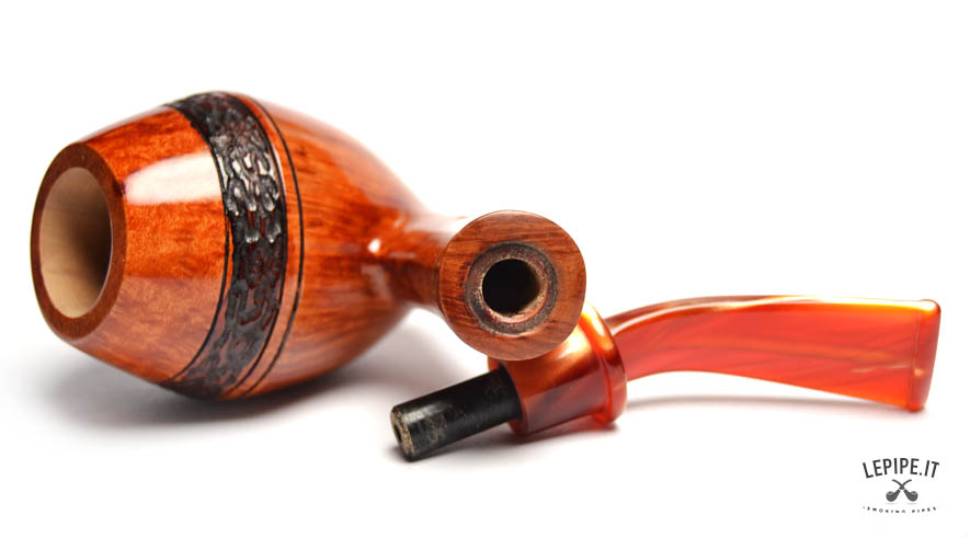 Pipa Santambrogio - FP n. 223  Bocchino in metacrilato Senza filtro Liscia Con altra elaborazione Diametro Interno: 21 mm. Diametro Esterno: 48 mm. Lunghezza: 141 mm. Altezza: 67 mm. Peso: 73 gr. Profondità: 50 mm.