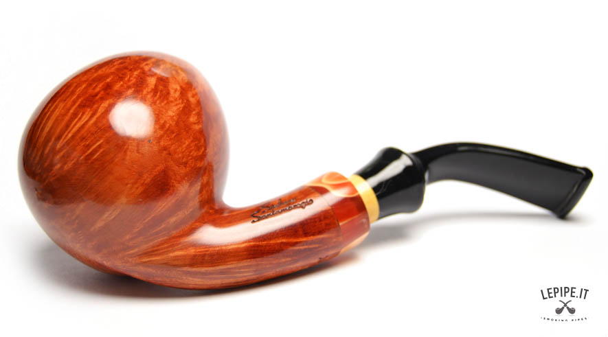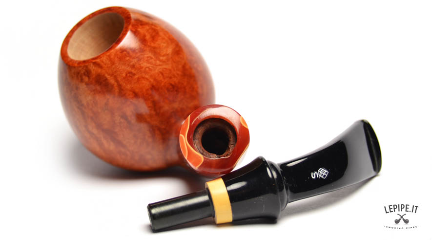 Pipa Santambrogio - FX n. 159  Bocchino in metacrilato Senza filtro Liscia Con altra elaborazione Diametro Interno: 20 mm. Diametro Esterno: 51 mm. Lunghezza: 147 mm. Altezza: 51 mm. Peso: 78 gr. Profondità: 43 mm.