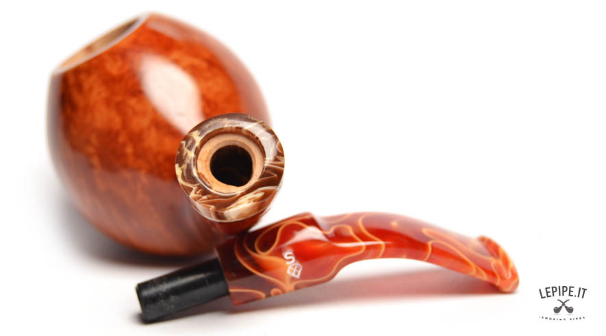 Pipa Santambrogio - FX n. 163  Bocchino in metacrilato Senza filtro Liscia Con altra elaborazione Diametro Interno: 21 mm. Diametro Esterno: 50 mm. Lunghezza: 141 mm. Altezza: 49 mm. Peso: 75 gr. Profondità: 39 mm.