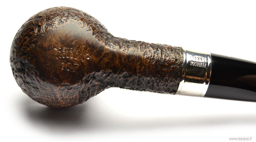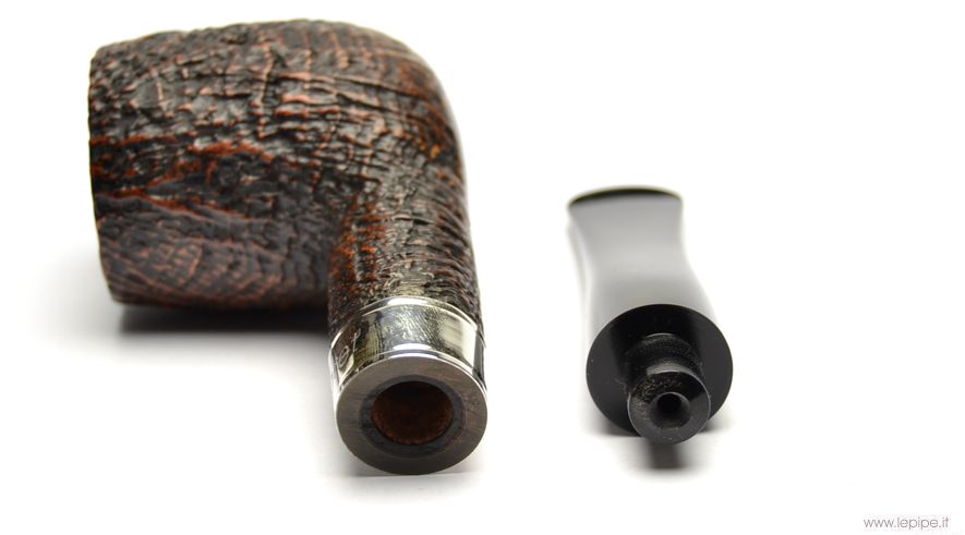 Pipa Peterson - Maigret n. 05 107 Bocchino in metacrilato Senza filtro Sabbiata Con elaborazione in argento Diametro Interno: 21 mm. Diametro Esterno: 41 mm. Lunghezza: 142 mm. Altezza: 50 mm. Peso: 60 gr. Profondità: 43 mm.