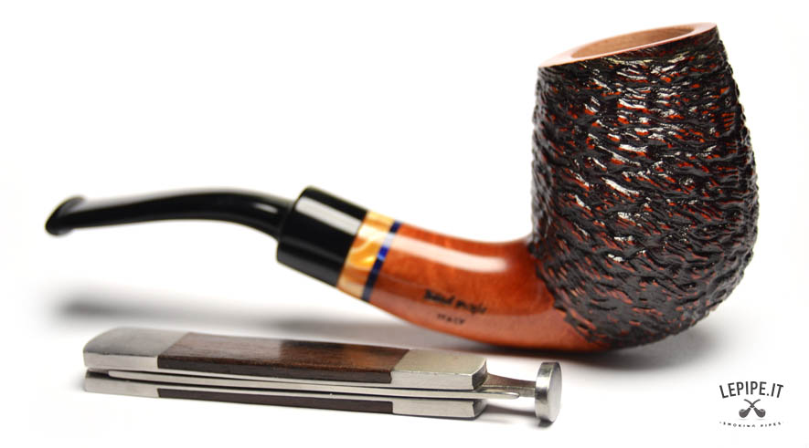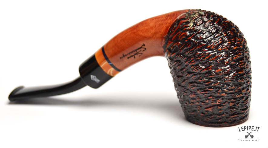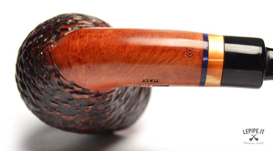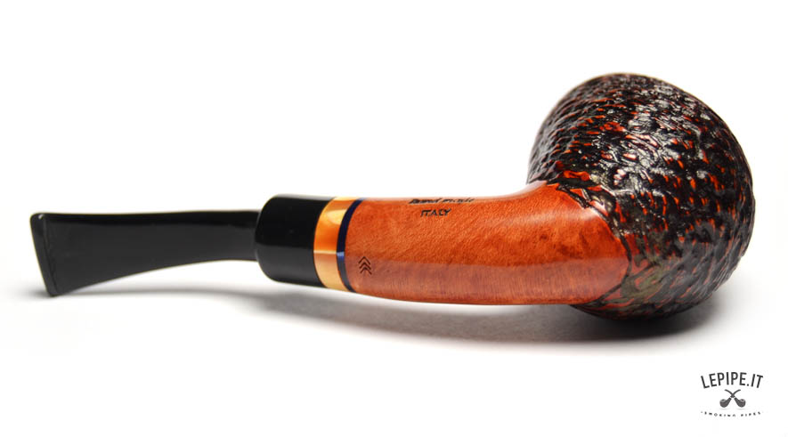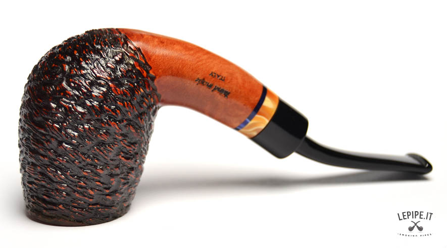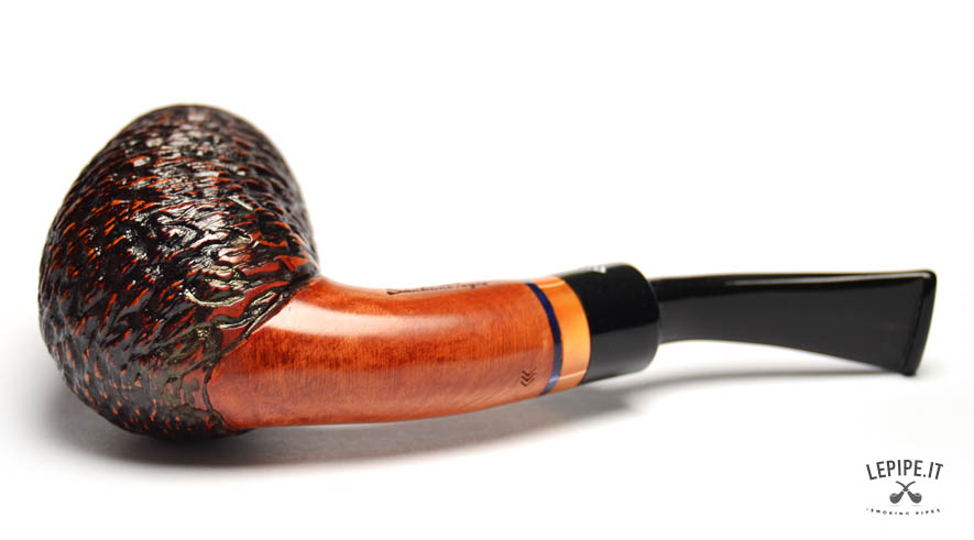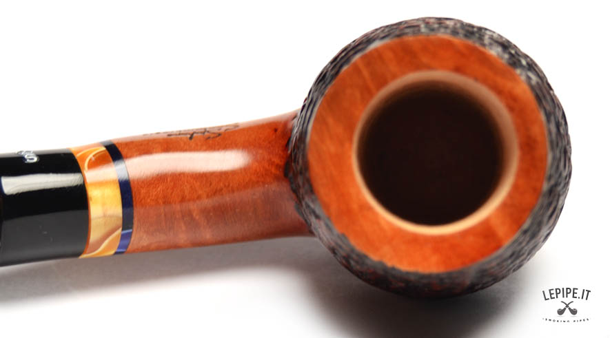 Pipa Santambrogio - Rusticata n. 249  Bocchino in metacrilato Senza filtro Rusticata Con altra elaborazione Diametro Interno: 21 mm. Diametro Esterno: 42 mm. Lunghezza: 137 mm. Altezza: 57 mm. Peso: 57 gr. Profondità: 45 mm.