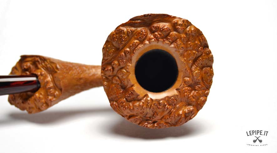 Pipa La Biota - n. 9  Bocchino in cumberland Senza filtro Sabbiata Senza elaborazione Diametro Interno: 18 mm. Diametro Esterno: 48 mm. Lunghezza: 142 mm. Altezza: 72 mm. Peso: 45 gr. Profondità: 35 mm.
