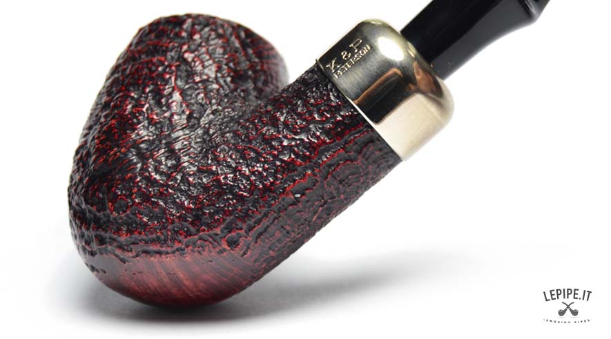Pipa Peterson - Standard System n. 49 Standard 307 Bocchino in metacrilato Senza filtro Sabbiata Con elaborazione in argento Diametro Interno: 20 mm. Diametro Esterno: 40 mm. Lunghezza: 153 mm. Altezza: 52 mm. Peso: 61 gr. Profondità: 42 mm.