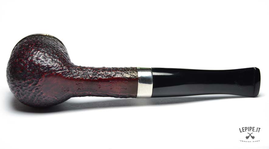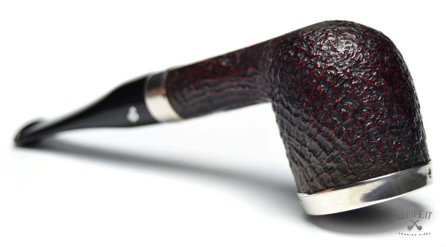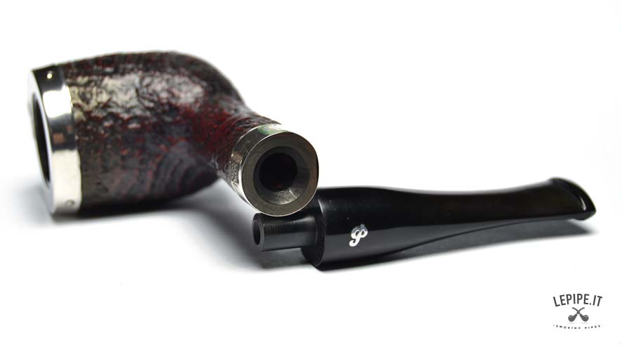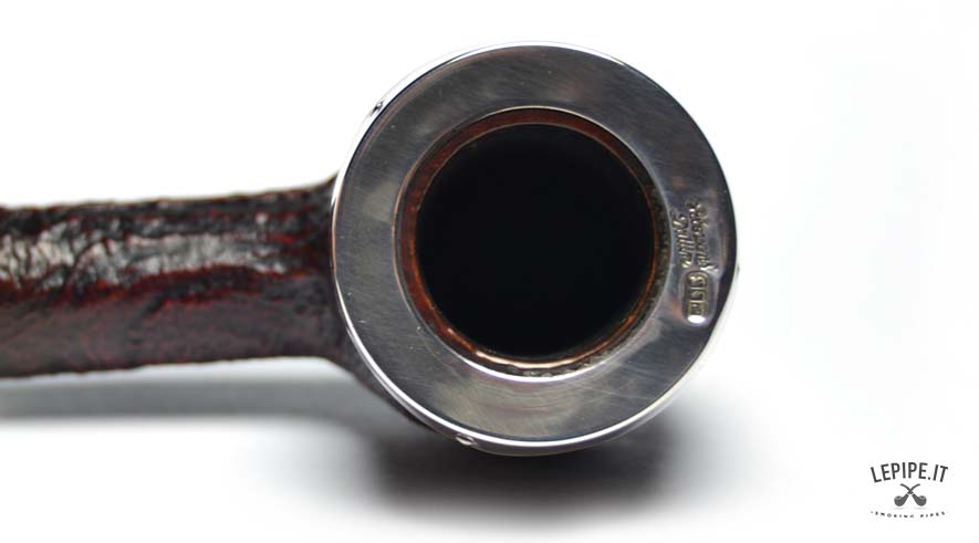 Pipa Peterson - Silver Cap n. 9 Mod 106 FT - Stand-Up Bocchino in ebanite Senza filtro Sabbiata Con elaborazione in argento Diametro Interno: 20 mm. Diametro Esterno: 36 mm. Lunghezza: 147 mm. Altezza: 47 mm. Peso: 52 gr. Profondità: 37 mm.