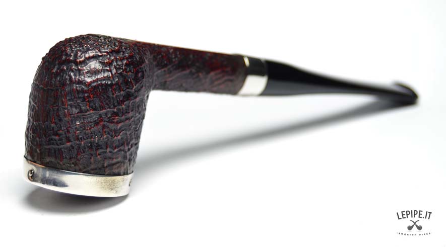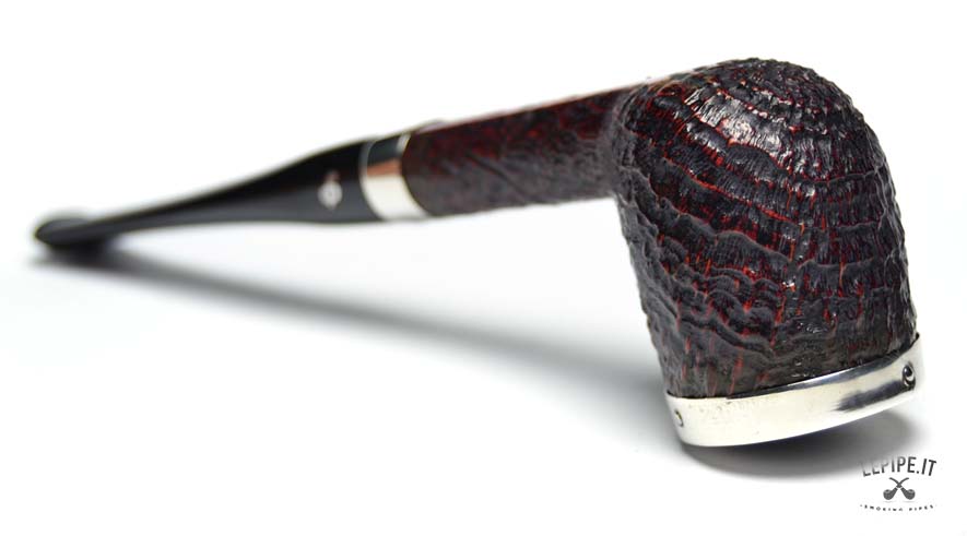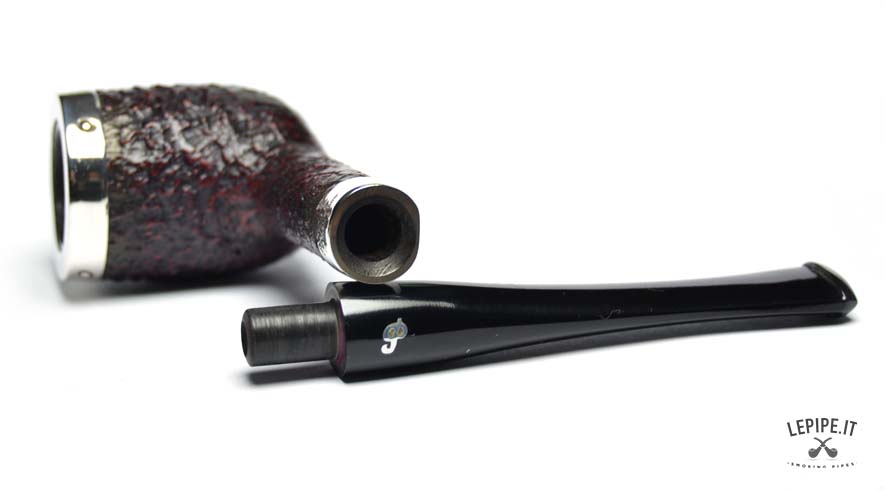 Pipa Peterson - Silver Cap n. 11 Mod 15 FT - Stand-Up Bocchino in ebanite Senza filtro Sabbiata Con elaborazione in argento Diametro Interno: 18 mm. Diametro Esterno: 32 mm. Lunghezza: 152 mm. Altezza: 41 mm. Peso: 31 gr. Profondità: 34 mm.