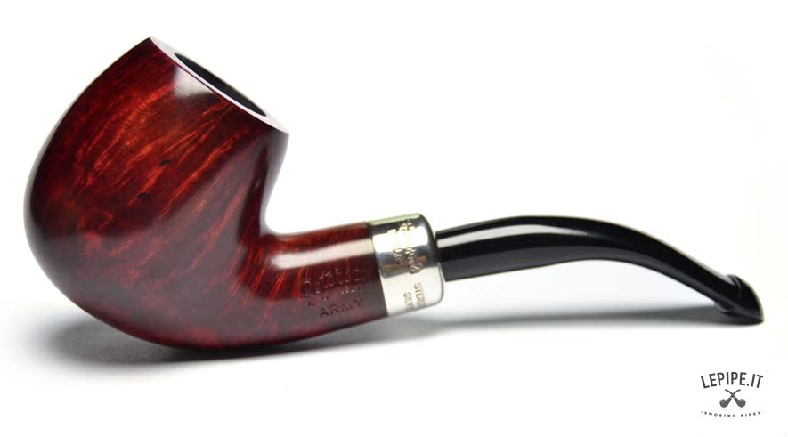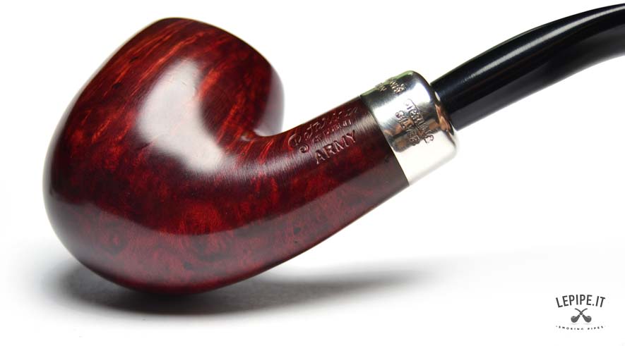 Pipa Peterson - Army n. 12 Mod 68 PL Bocchino in metacrilato Senza filtro Liscia Con elaborazione in argento Diametro Interno: 21 mm. Diametro Esterno: 43 mm. Lunghezza: 147 mm. Altezza: 49 mm. Peso: 67 gr. Profondità: 41 mm.