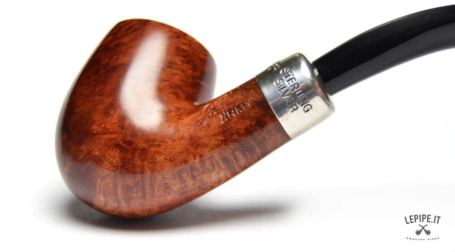 Pipa Peterson - Army n. 18 Mod 69 FT Bocchino in metacrilato Senza filtro Liscia Con elaborazione in argento Diametro Interno: 20 mm. Diametro Esterno: 37 mm. Lunghezza: 136 mm. Altezza: 47 mm. Peso: 47 gr. Profondità: 38 mm.