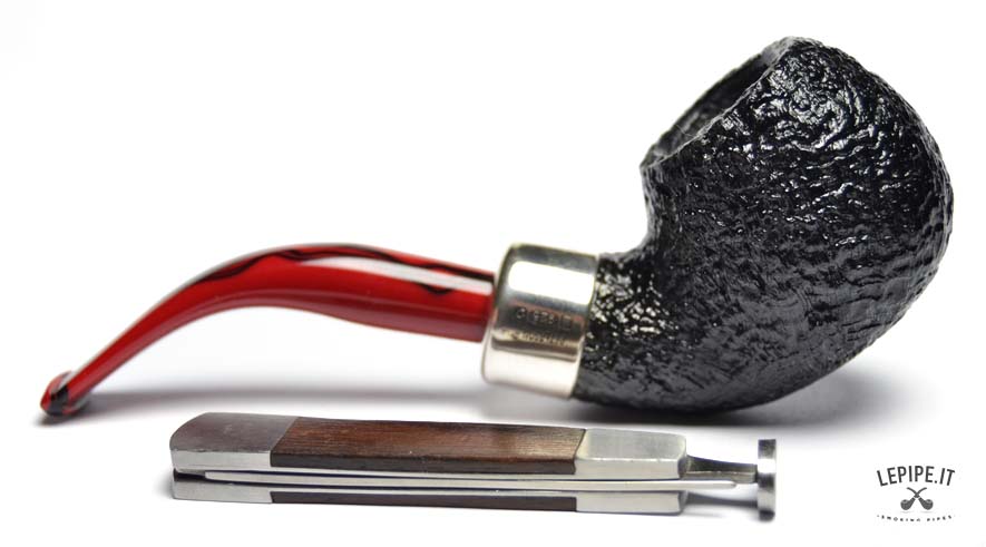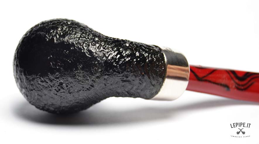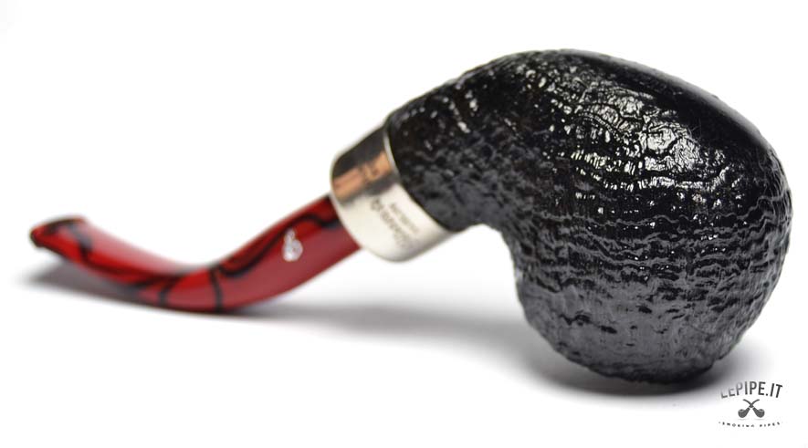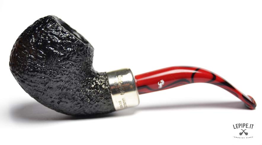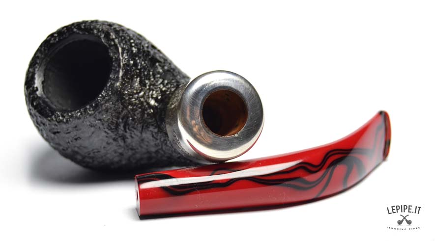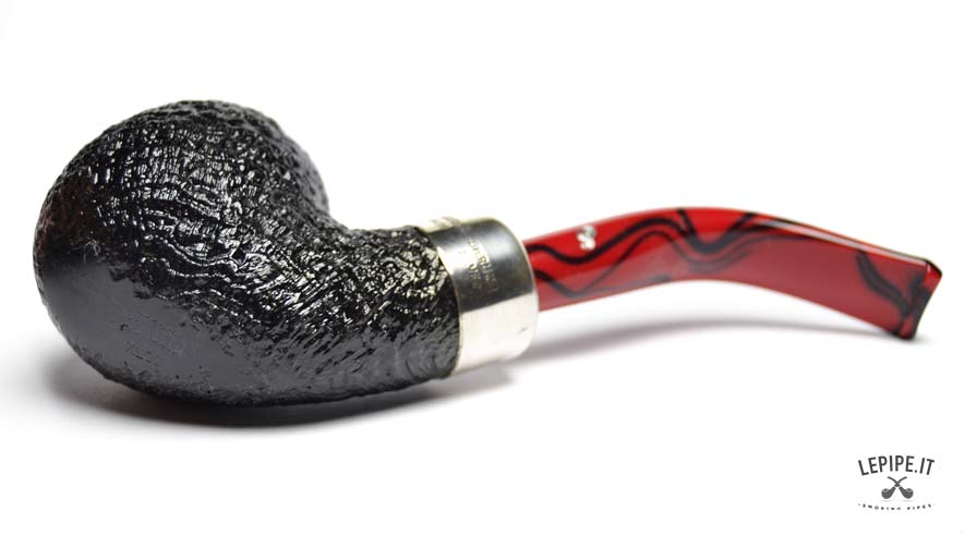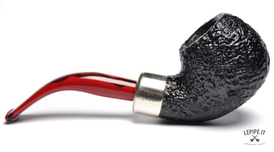Pipa Peterson - Magma n. 11 Mod XL02 FT Bocchino in metacrilato Senza filtro Sabbiata Con elaborazione in argento Diametro Interno: 21 mm. Diametro Esterno: 43 mm. Lunghezza: 147 mm. Altezza: 42 mm. Peso: 61 gr. Profondità: 34 mm.