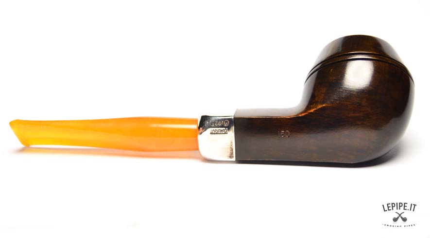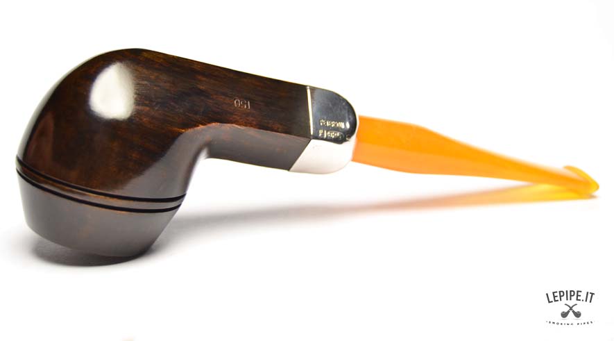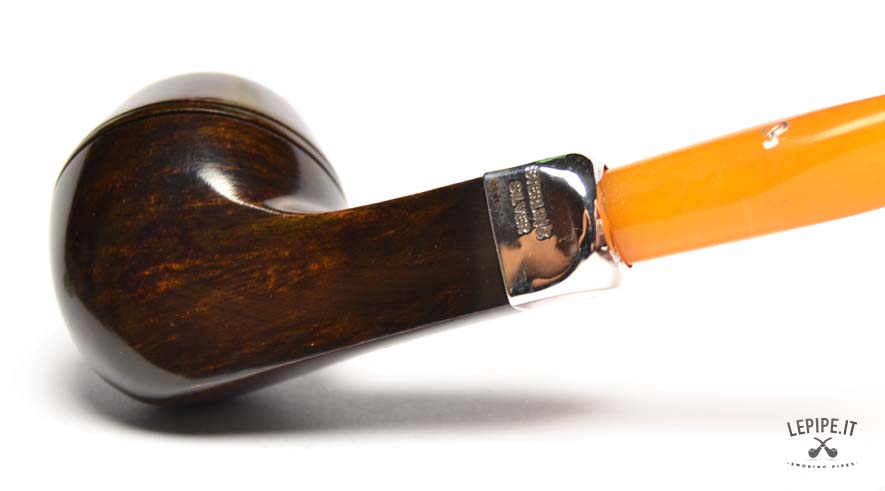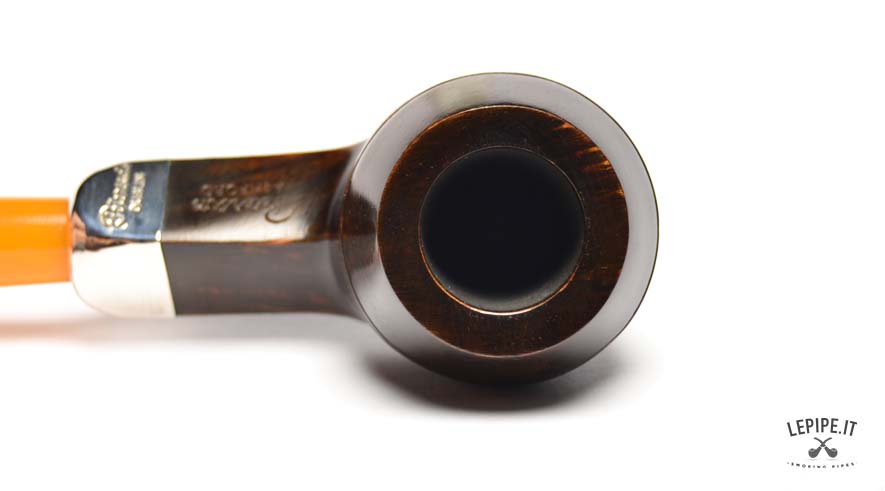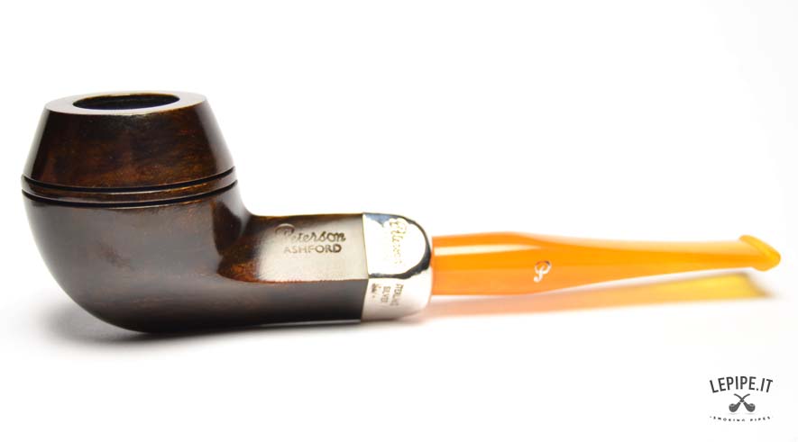 Pipa Peterson - Ashford Army n. 42 Mod 150 FT Bocchino in cumberland Senza filtro Liscia Con elaborazione in argento Diametro Interno: 20 mm. Diametro Esterno: 40 mm. Lunghezza: 153 mm. Altezza: 47 mm. Peso: 48 gr. Profondità: 36 mm.