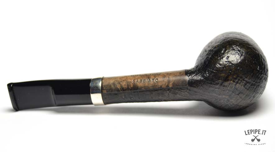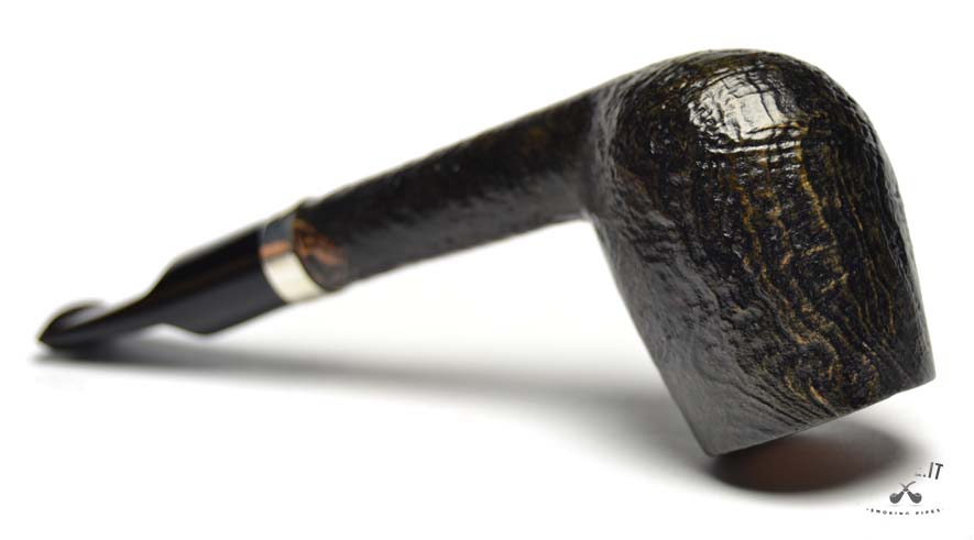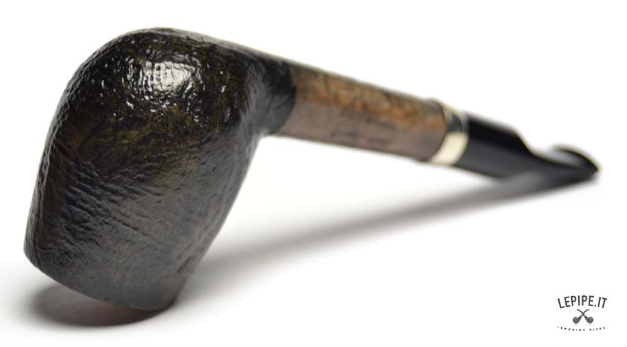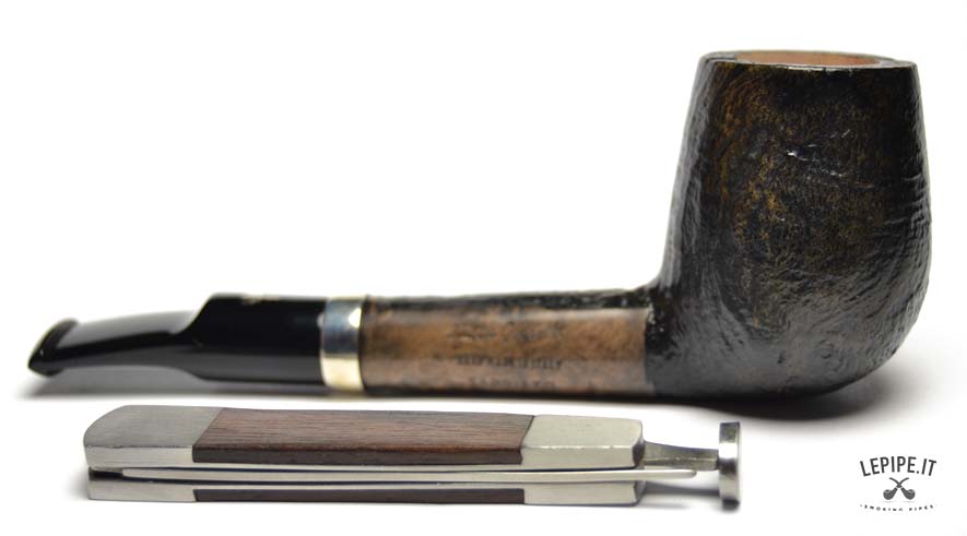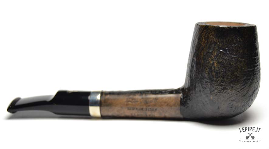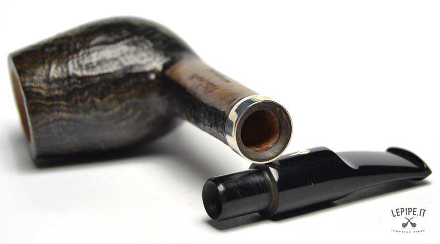 Pipa Mastro Geppetto - n. 46  Bocchino in metacrilato Senza filtro Sabbiata Con elaborazione in argento Diametro Interno: 20 mm. Diametro Esterno: 36 mm. Lunghezza: 133 mm. Altezza: 48 mm. Peso: 40 gr. Profondità: 37 mm.